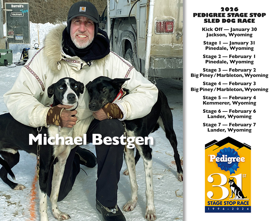 Michael has worked for Miller Chevrolet in Rogers, Minnesota, for 40 years. He’s married to Vicki and has four grown children and ten grandkids. He’s raced dogs for 27 years. “I start training in September, when the temperature gets under 50 degrees,” he says. “I use a side-by-side, until the snow comes. I usually run about six races a season in Wisconsin, Minnesota, the Upper Peninsula of Michigan, and of course, Wyoming. This will be my fourth time coming to this beautiful race. It started as a one-time thing, but it’s just such a great race that I want to keep coming back.”