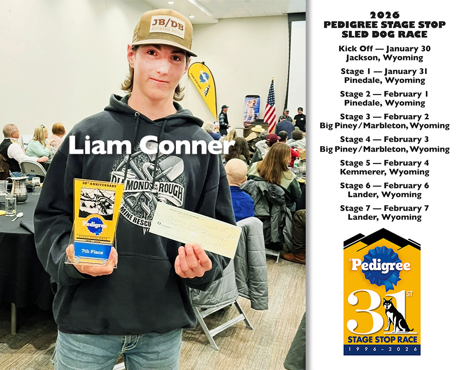 Liam has been racing sled dogs since he was three years old and has always loved the sport. Like his dad, he grew up racing the Ma Mow We Tak sprint circuit in Northern Canada and is proud to represent Saskatchewan. He’s an athlete who loves sports, including track, volleyball, golf, and baseball. Liam and his team will be focused, trying their best to improve on last year’s time — they finished in 7th place overall in his rookie run at last year’s Stage Stop Race. “There is nothing better than spending a couple of weeks in the mountains of Wyoming!”