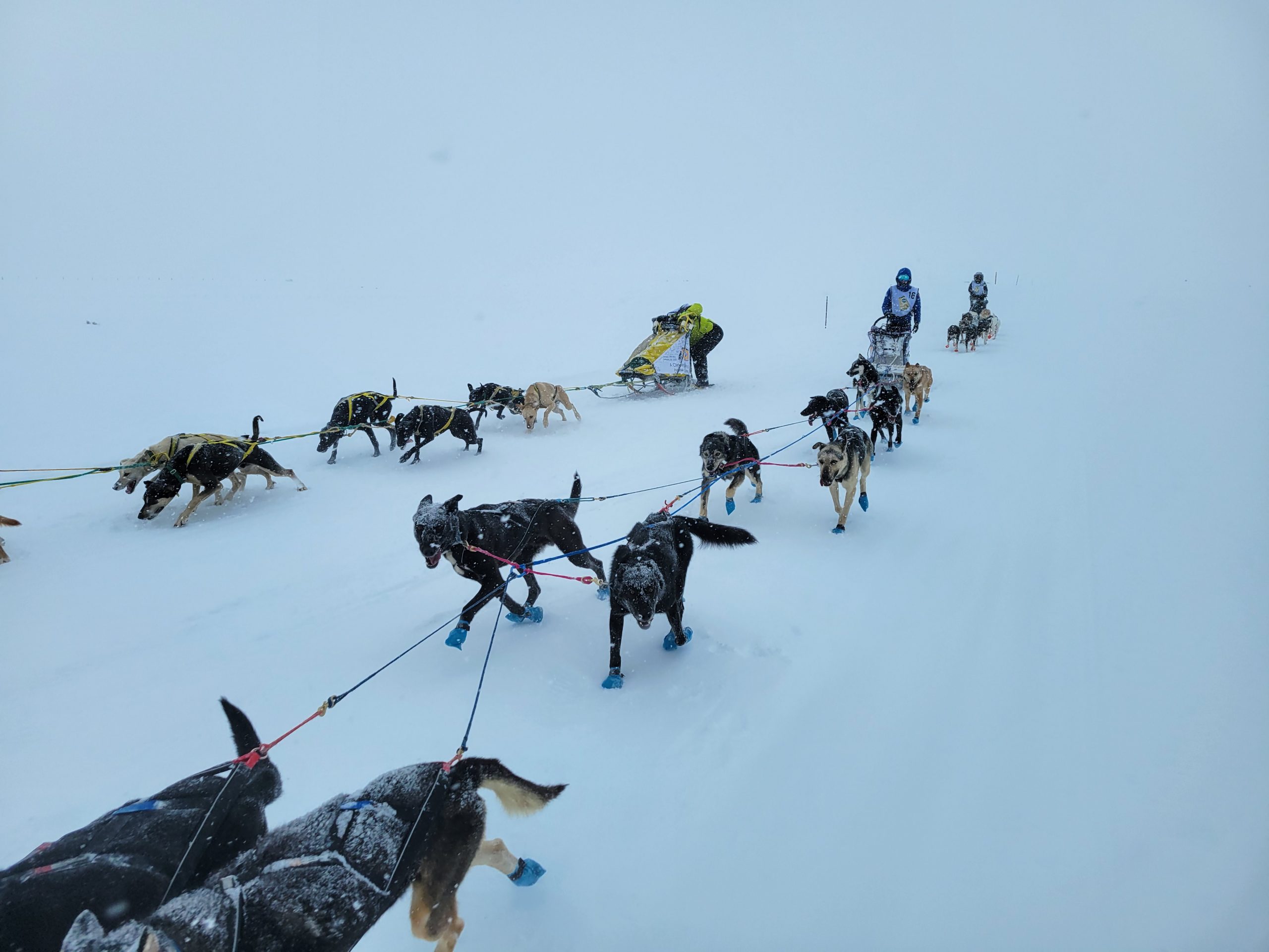 Mushers stories varied from being clear blown off the trail, to missing the odd turn, to only being able to see their last 2 pairs of dogs.