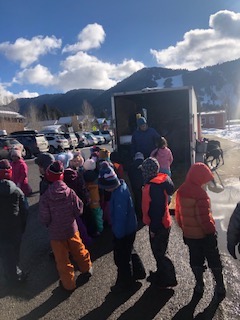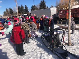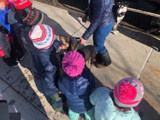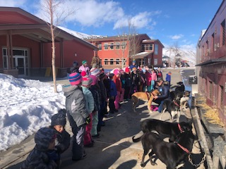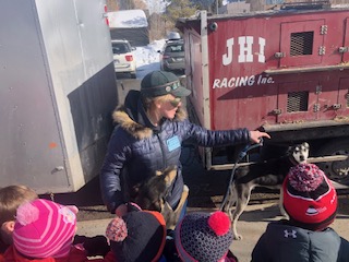 Hello Pedigree® Stage Stop Race Fans. It is always fun to see children eyes light up, when they meet the sled dogs. Here are a few shots of Alix Crittenden meeting up with school children at Jackson Elementary School: