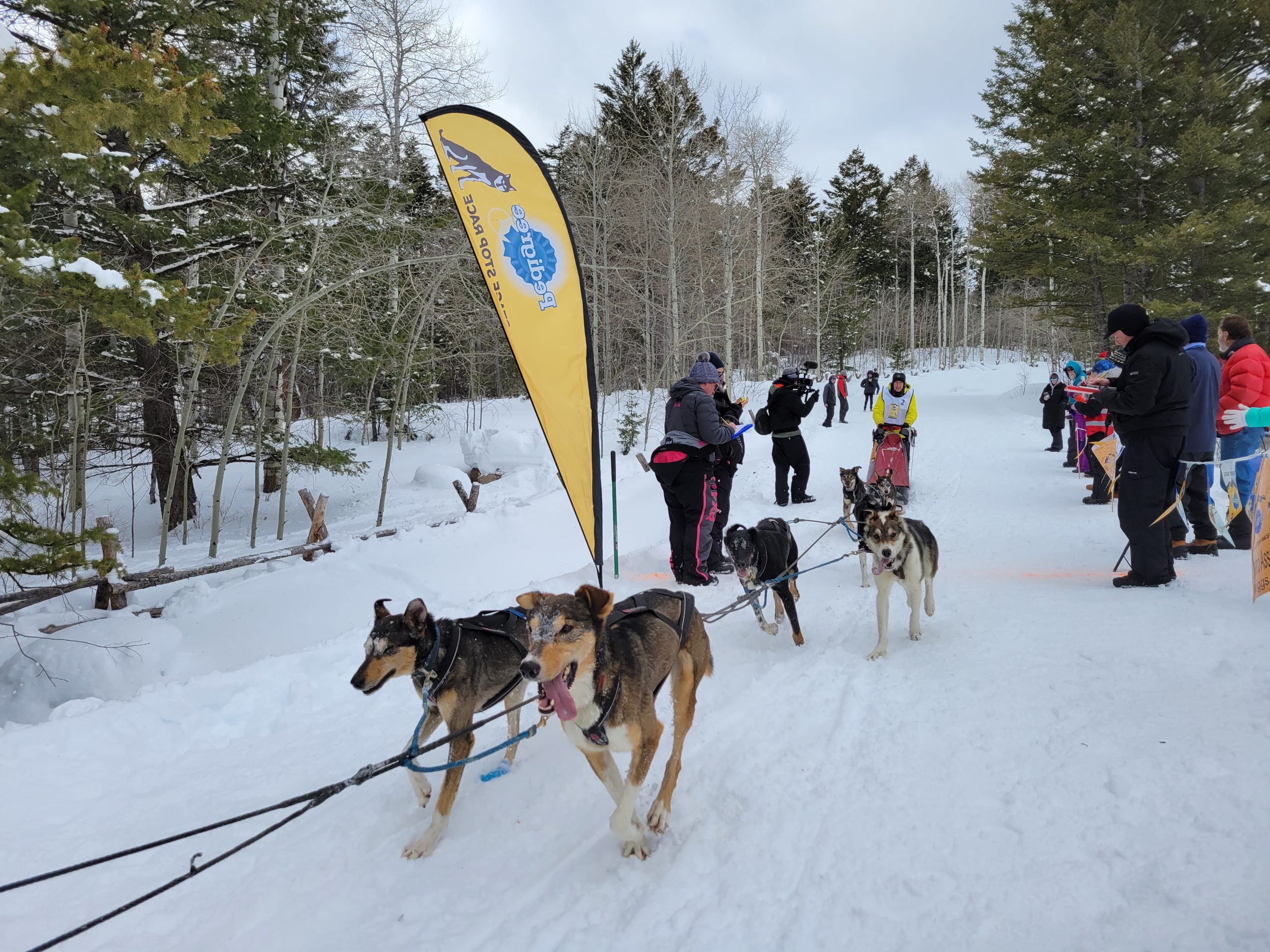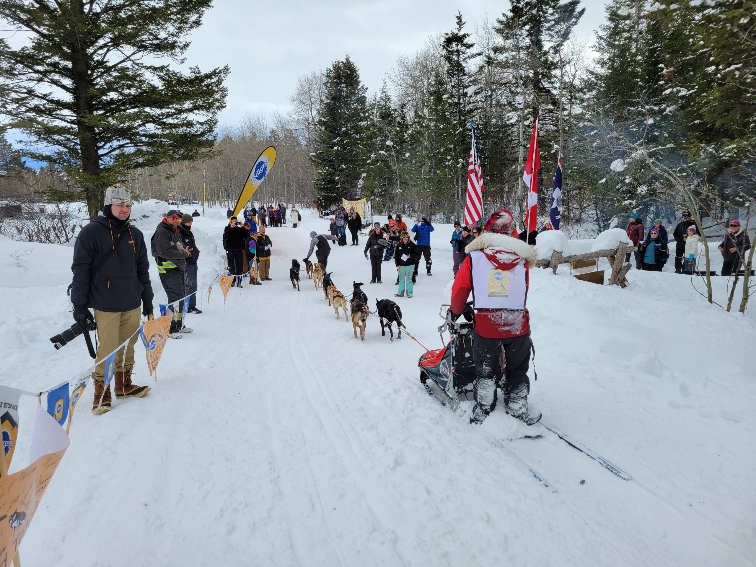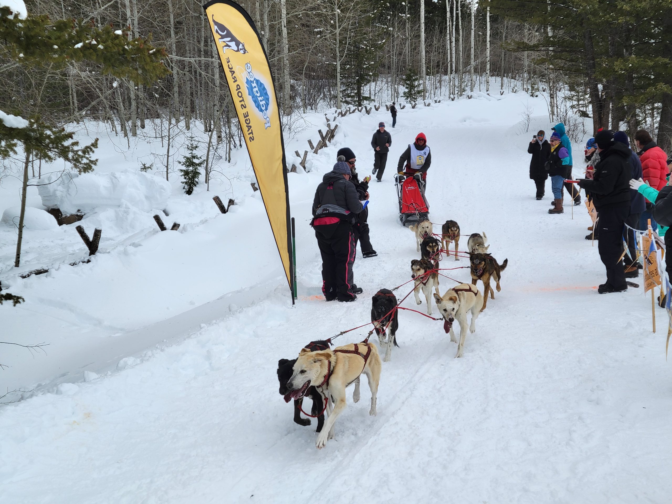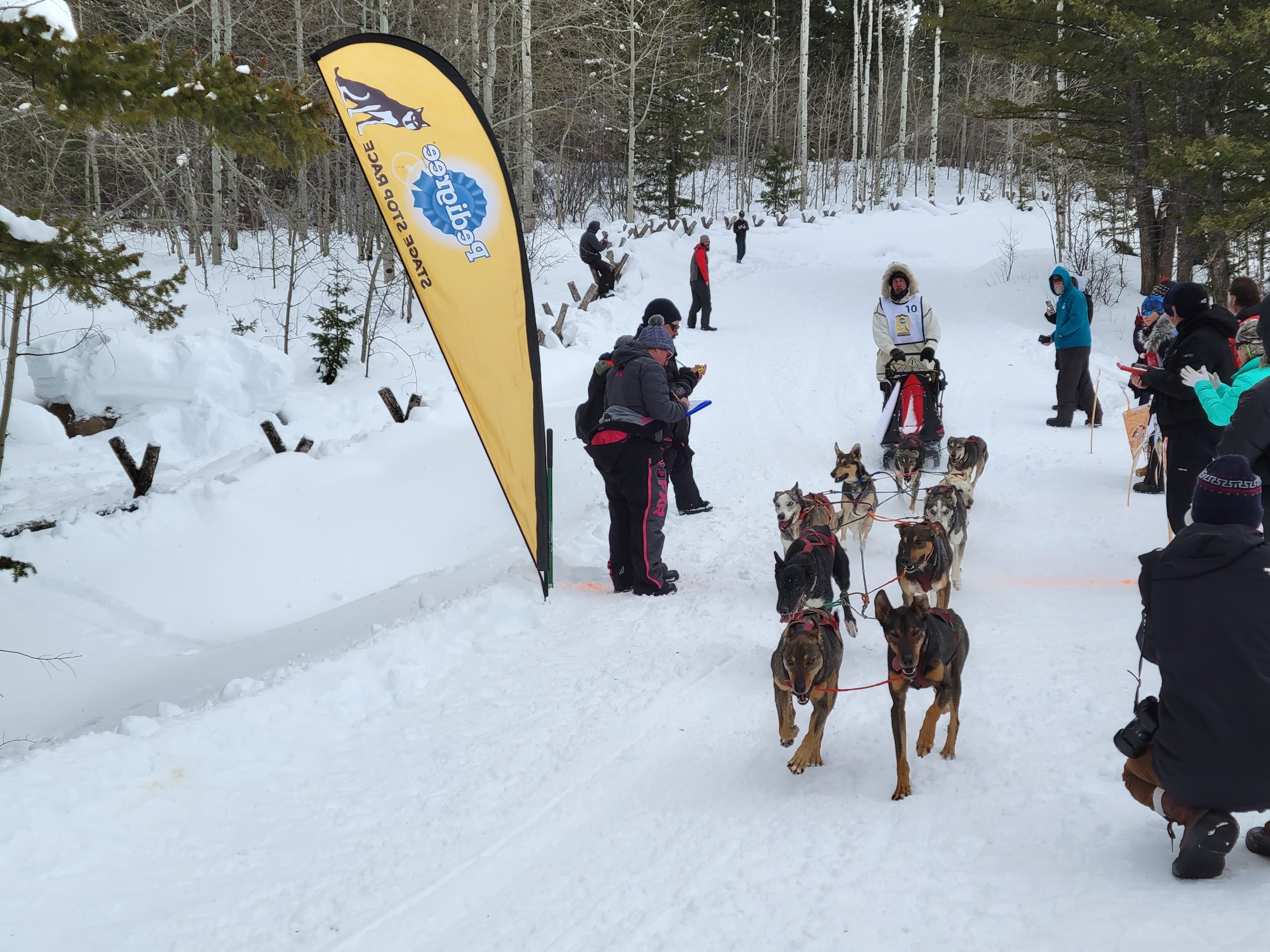 And it is a wrap. Another successful day of racing. Temperatures remained nicely below freezing. The trail was much better than feared and a nice breeze kept the dogs cool. All 16 teams are into the finish! Anny Malo is now a 5 time Champion of the Pedigree Stage Stop Race. She has won every single race she has entered! Well done! Official times and standings are coming soon!
