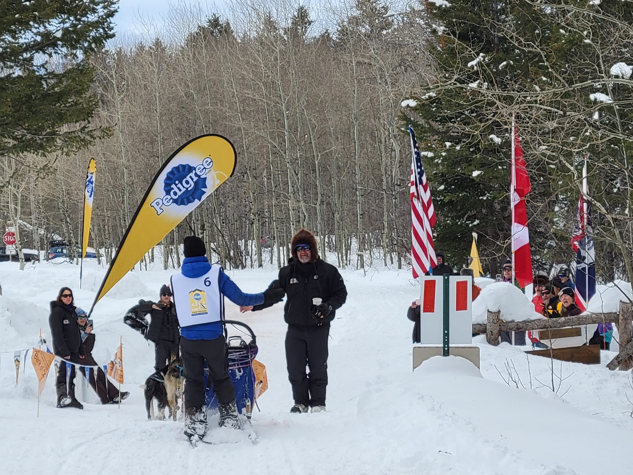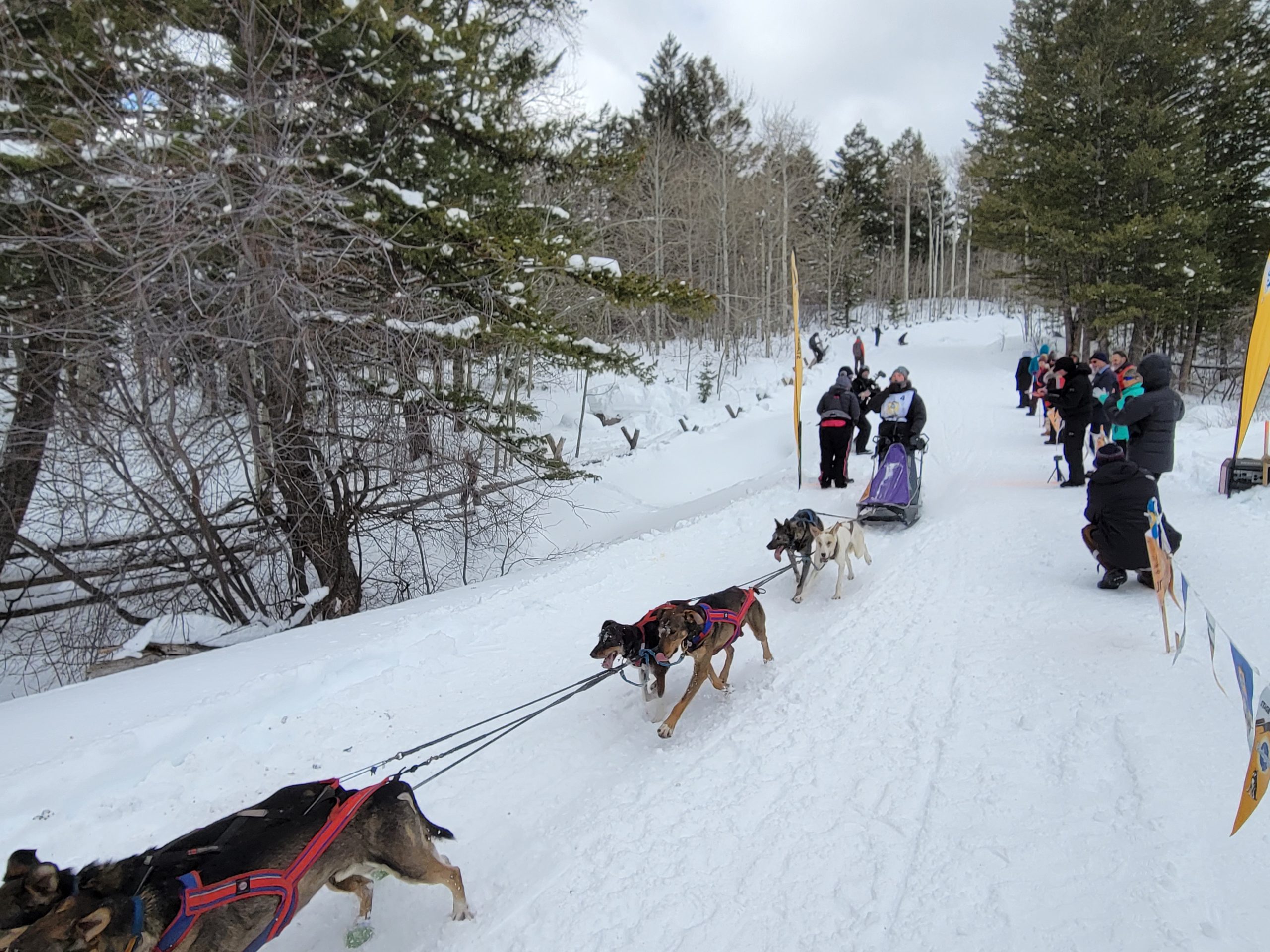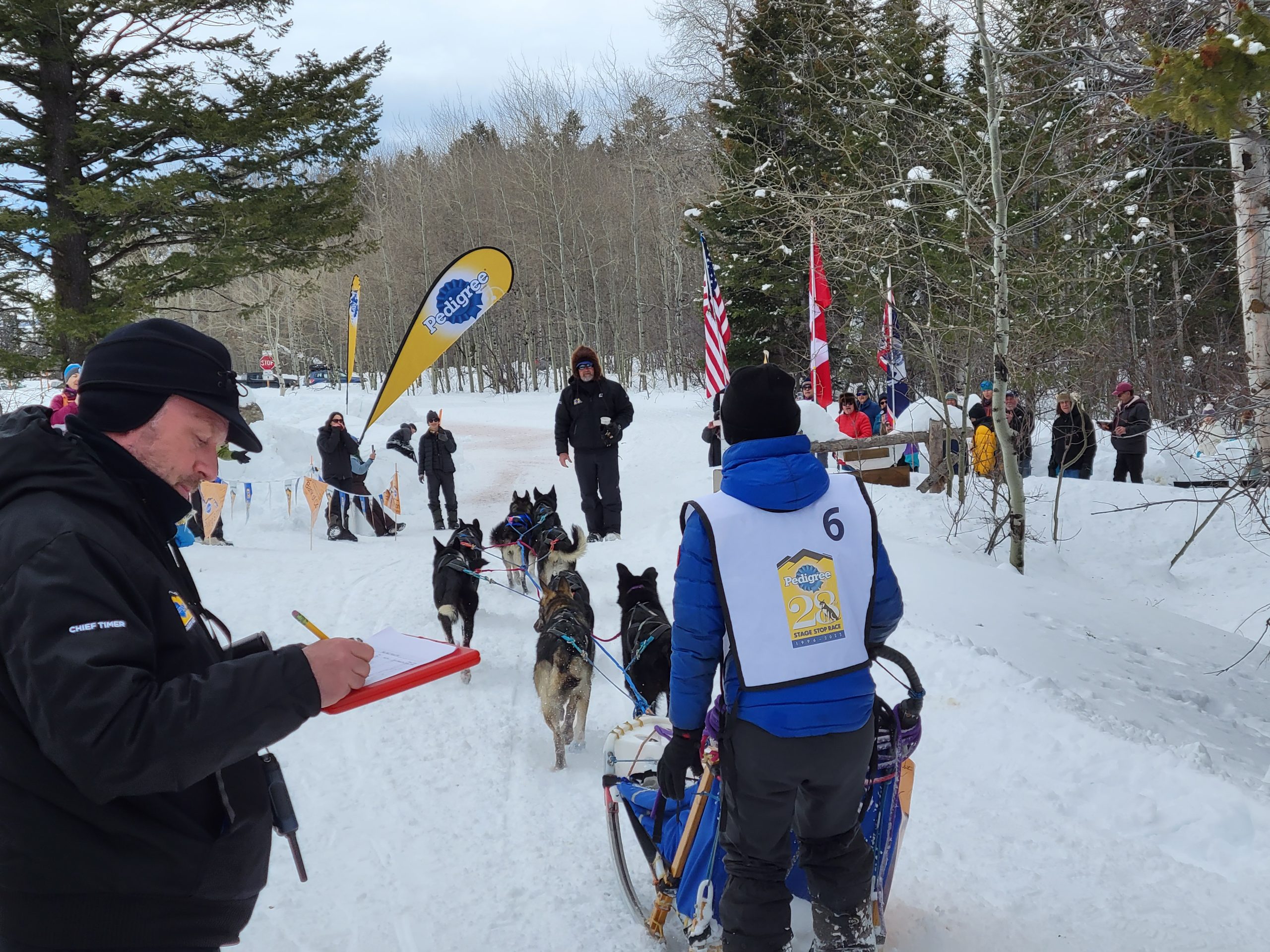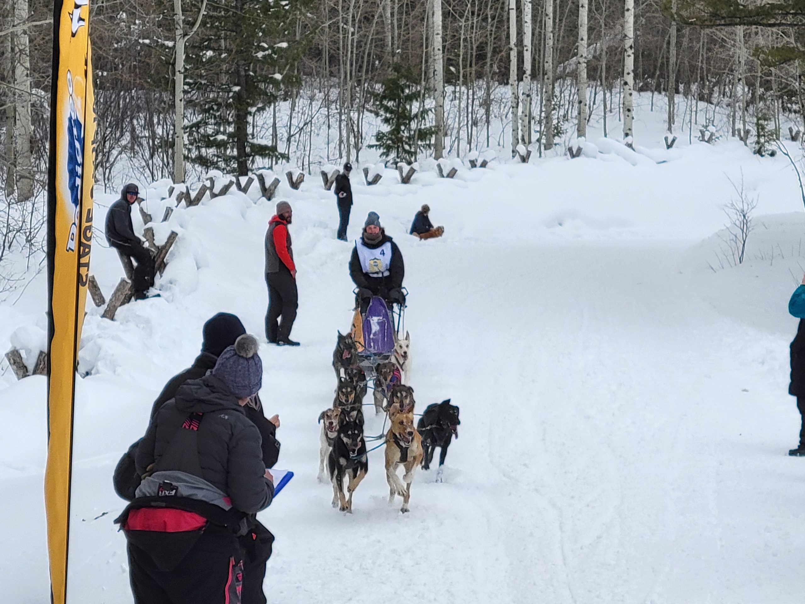 And it is a wrap. Another successful day of racing. Temperatures remained nicely below freezing. The trail was much better than feared and a nice breeze kept the dogs cool. All 16 teams are into the finish! Anny Malo is now a 5 time Champion of the Pedigree Stage Stop Race. She has won every single race she has entered! Well done! Official times and standings are coming soon!