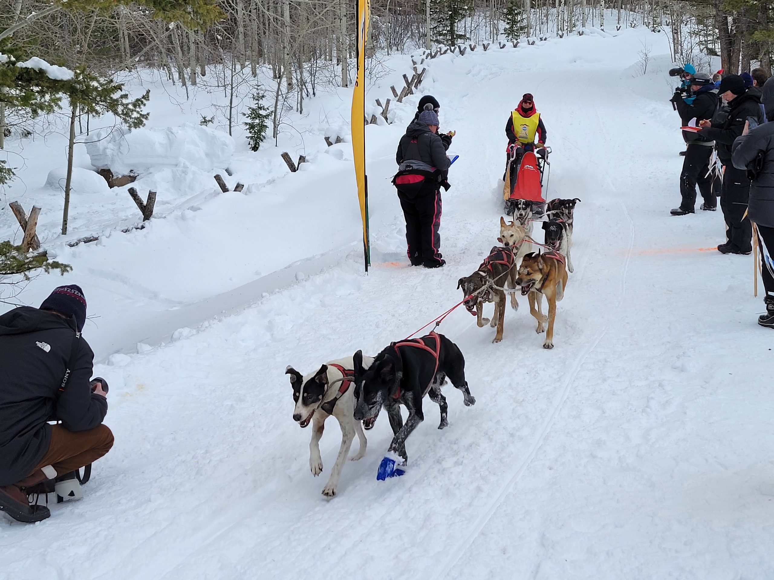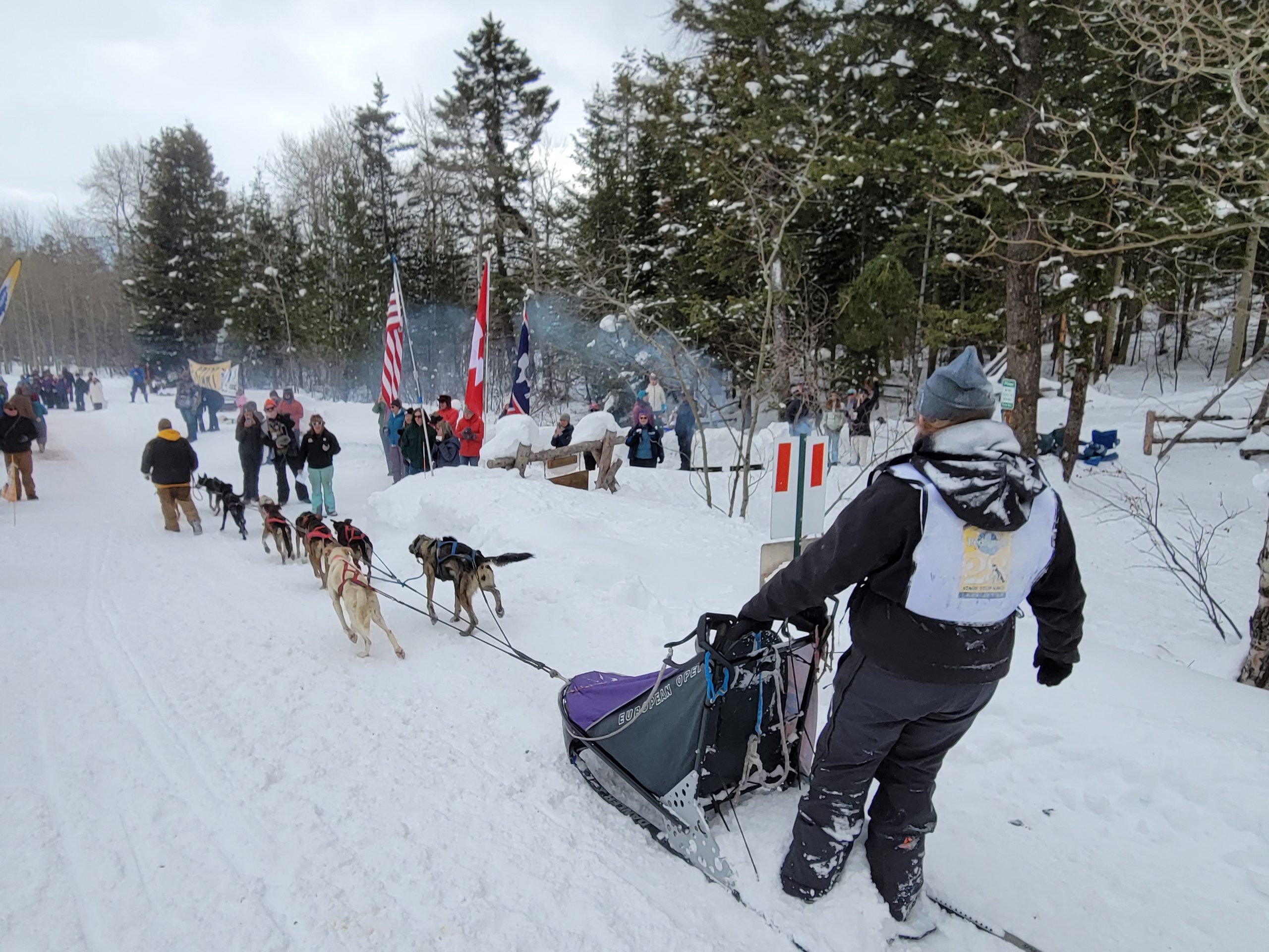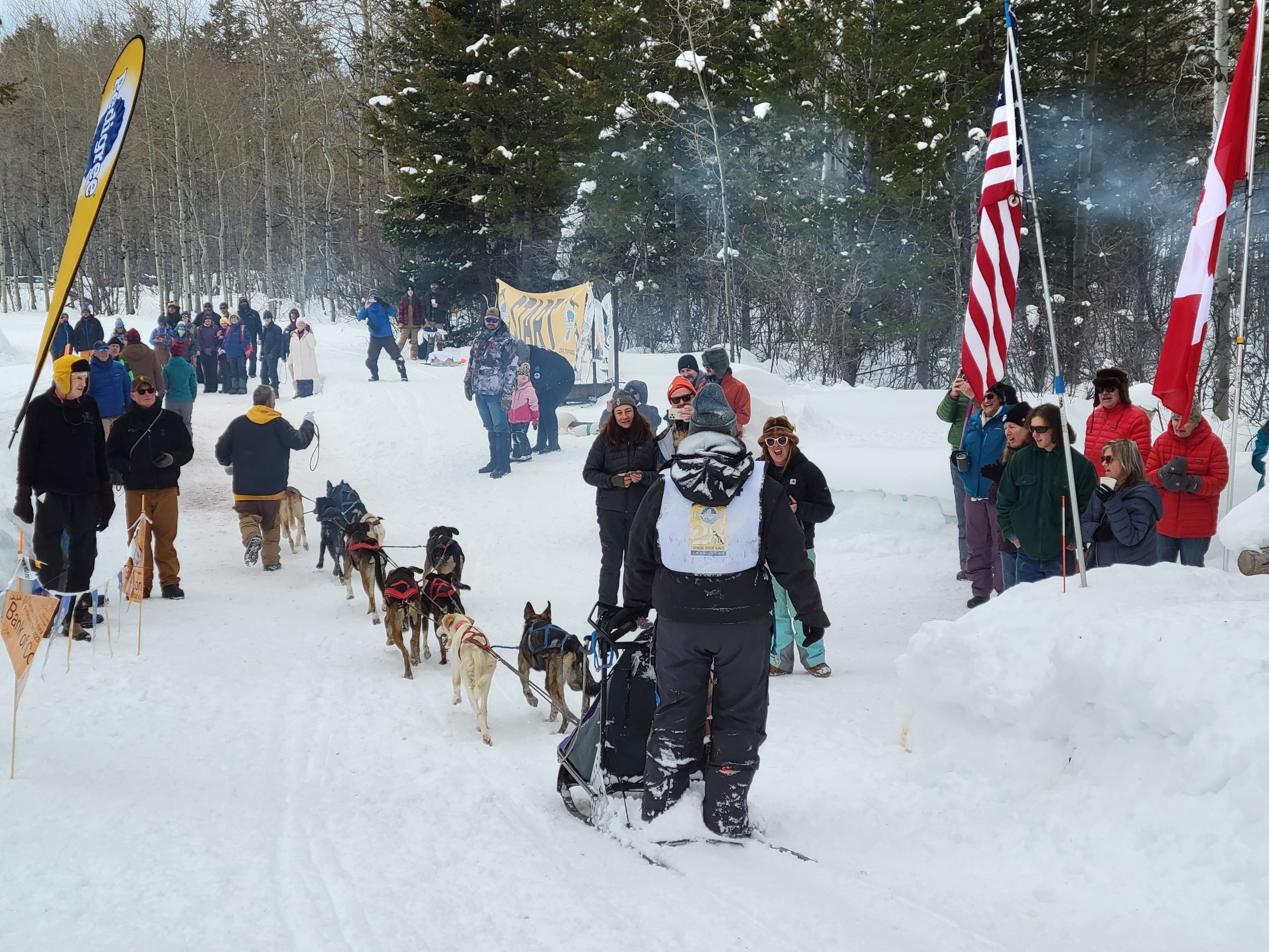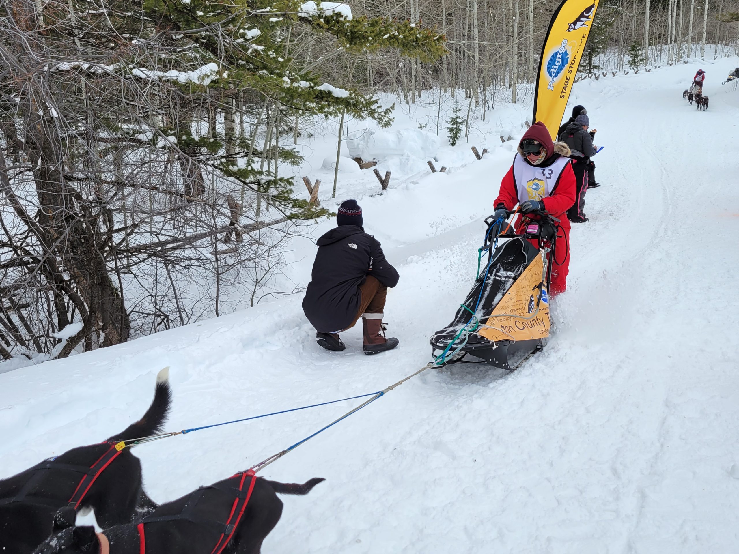 And it is a wrap. Another successful day of racing. Temperatures remained nicely below freezing. The trail was much better than feared and a nice breeze kept the dogs cool. All 16 teams are into the finish! Anny Malo is now a 5 time Champion of the Pedigree Stage Stop Race. She has won every single race she has entered! Well done! Official times and standings are coming soon!