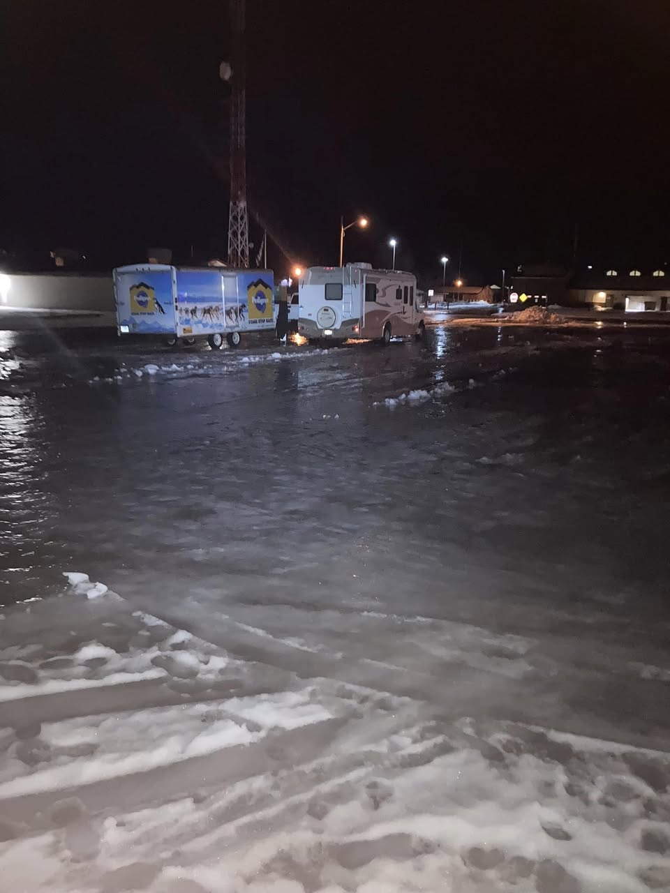 Here to pictures Tim Thiessen took this morning in the parking lot at the motel: