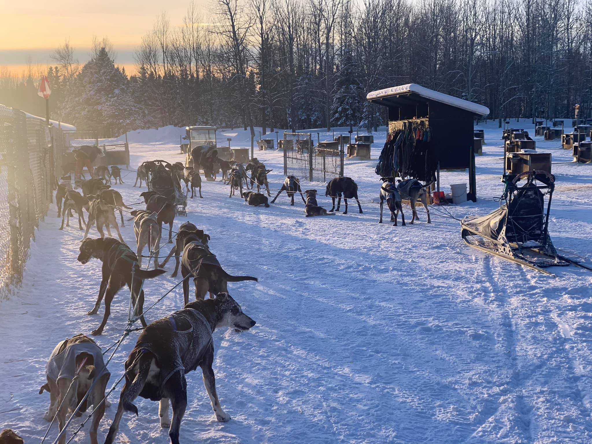 Back at home Terry Streeper is looking after the kennel. He sure has been posting some fun ” blasts from the past ” during the last days on Facebook. Lina’s mom came over from Sweden to take care of their children, so Bud and Lina are on the road without family. They started with 39 dogs. To them, that is not a big number. Watching their whole team loose drop is an impressive sight.