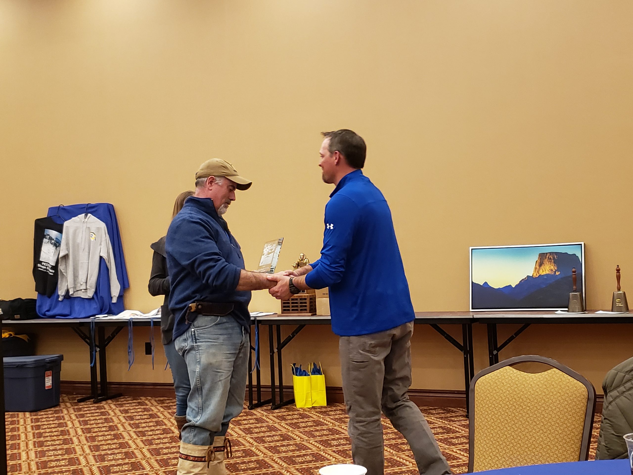 Frank chimed in throughout the banquet. He is very proud of ” His Stage Stop Family “. And he has every reason to be so. Having been around many races over the past 2 decades, I have never experienced a race where there was absolutely no ” whining and moaning ” going on. Not once. Zip zilch! It indeed is a big Stage Stop Family and one who gets along very well! The Mars Family honored long standing volunteers with very nice, special edition, sterling silver knifes! They seem to be equally proud of their Stage Stop Family as Frank is.