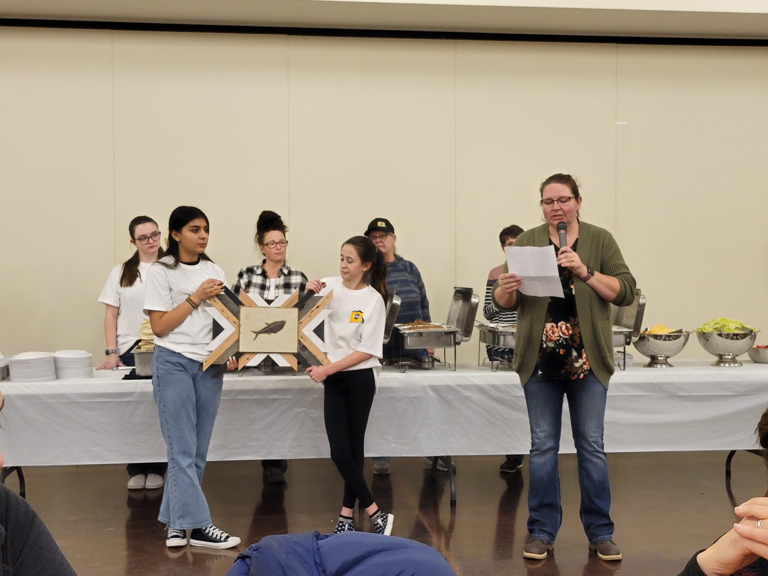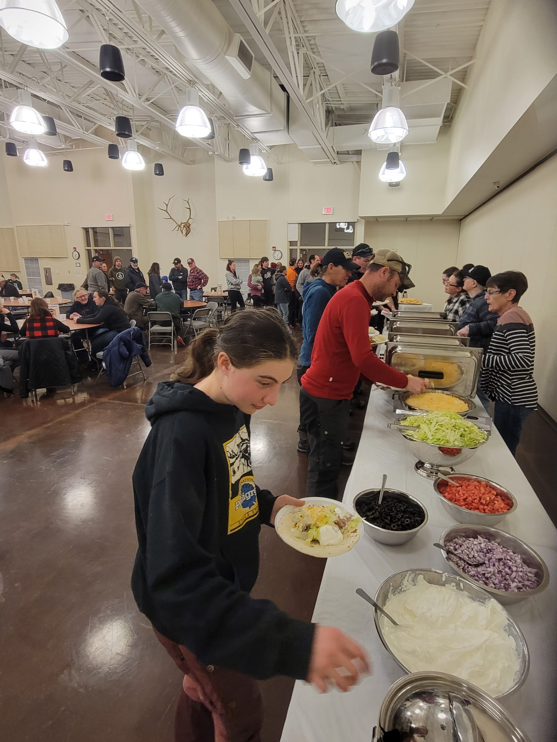 Taco Night! We had a wonderful meal last night at the Kemmerer South Lincoln Training and Event Center. Once again the the fastest team will receive a beautiful fish fossil trophy for winning the 5th Stage. I was ( half ) joking with Anny Malo, that she better ” gets a move on “. In total Anny is trailing Remy Coste now by 5 Minutes.