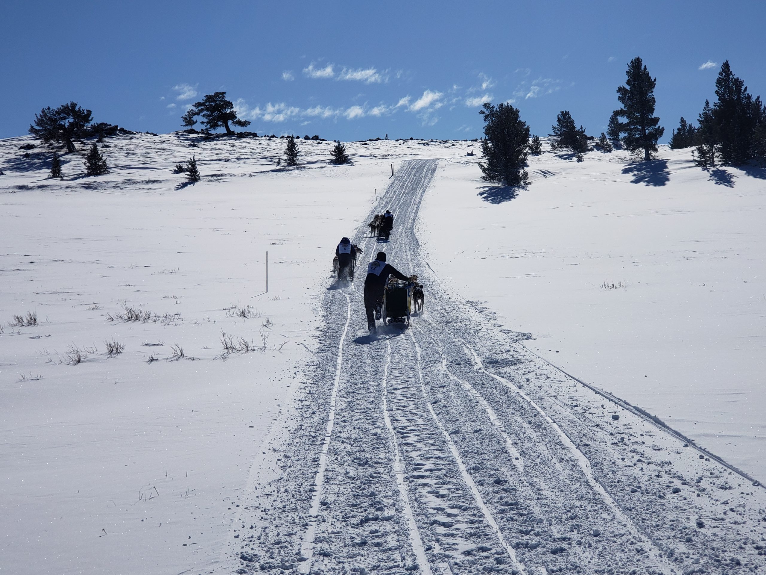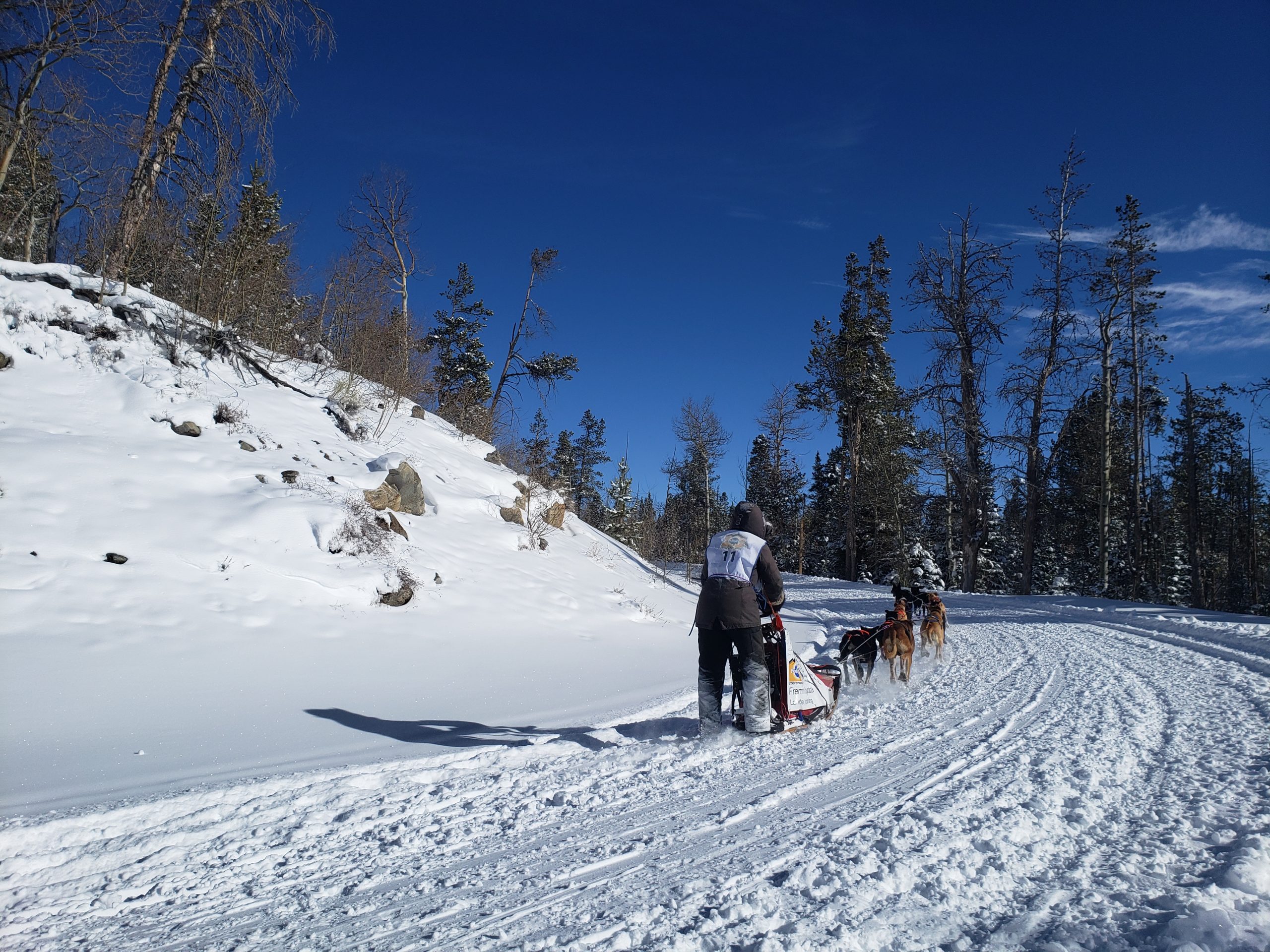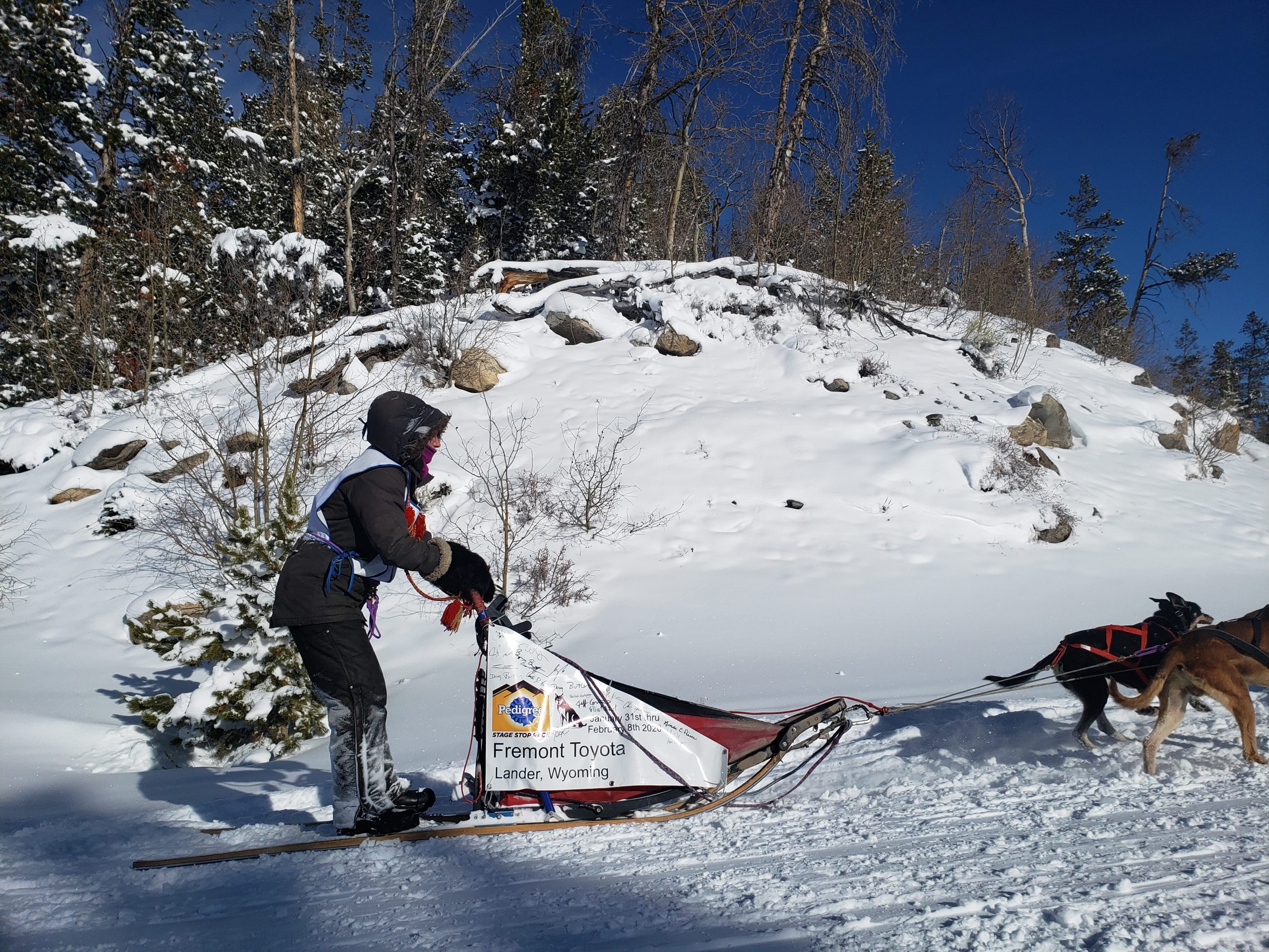 What a stellar day to race. South Pass can be a real windy spot. Just looking at the trees leaning all to one side, says it all. The Mushers were lucky today. Next to no wind and great temperatures to run dogs. At least early in the morning, it did heat up throughout the day.