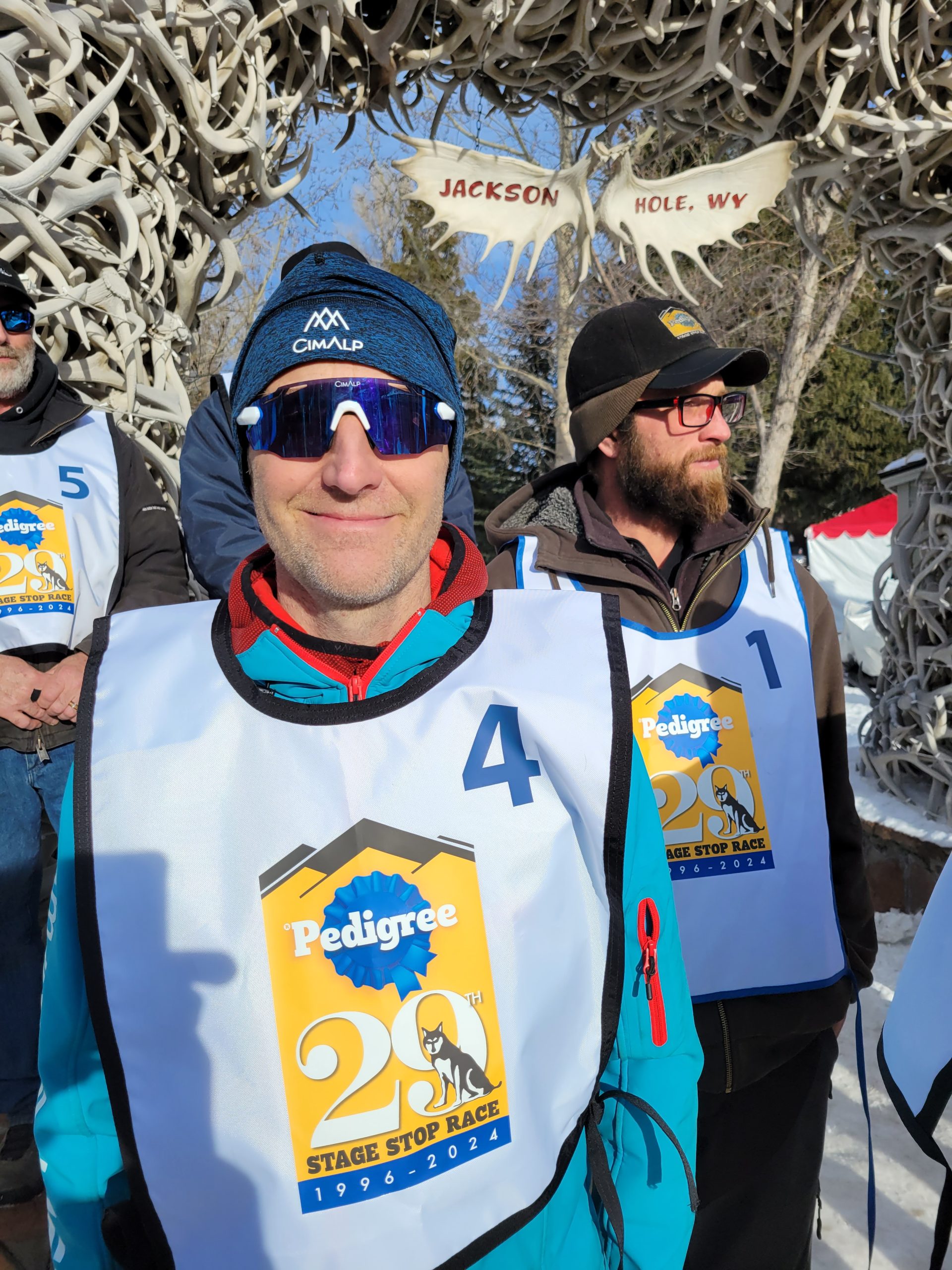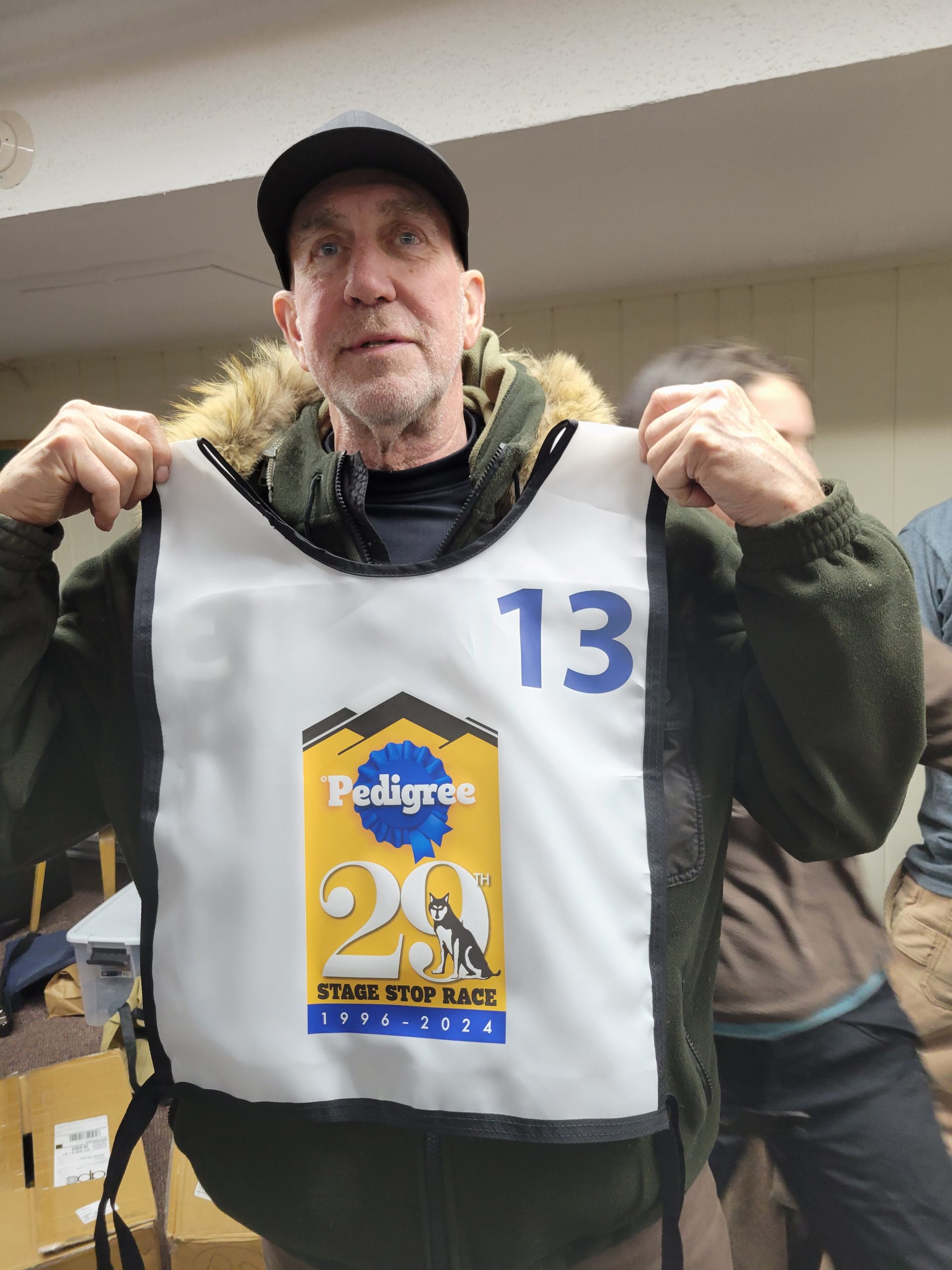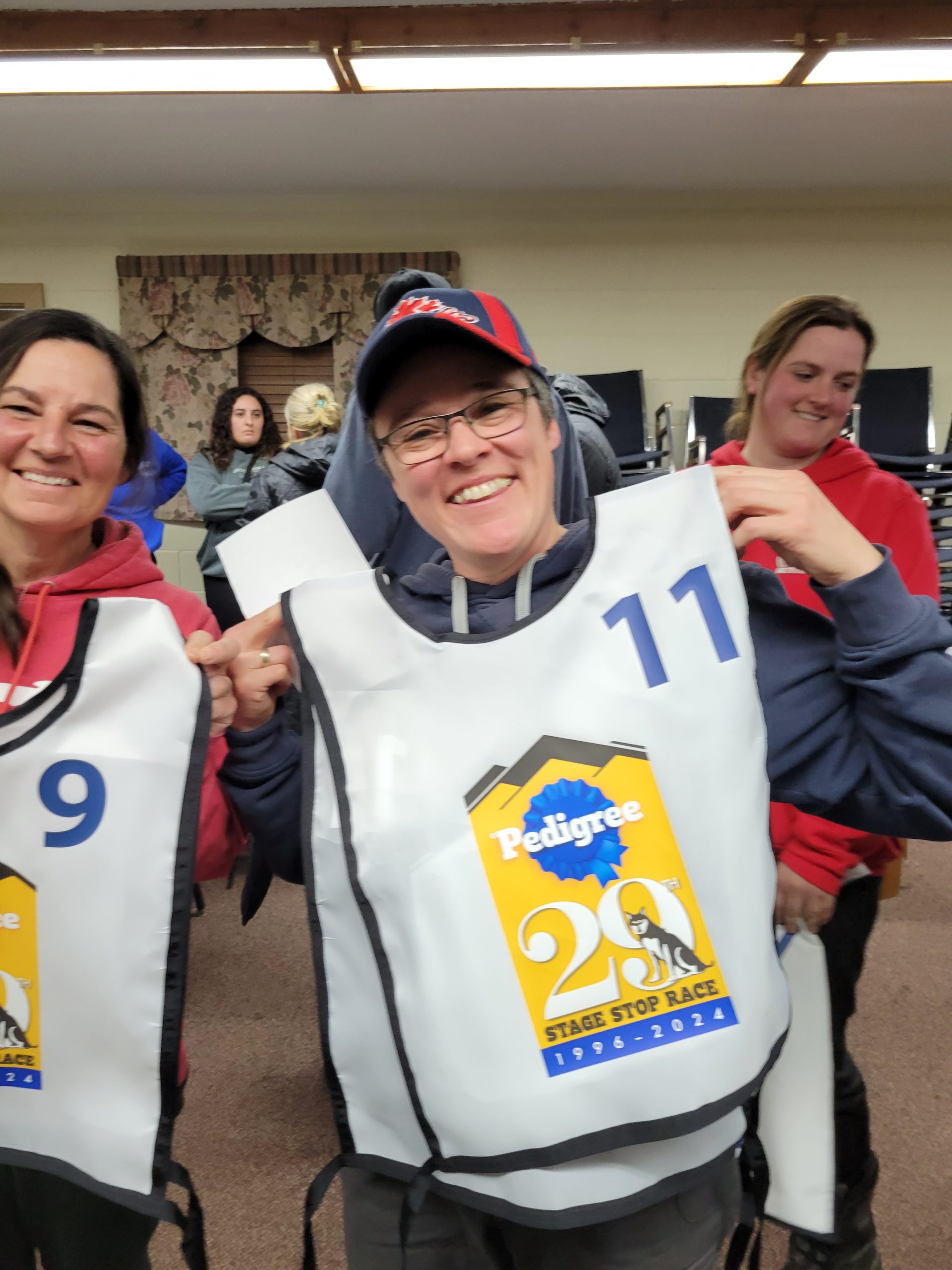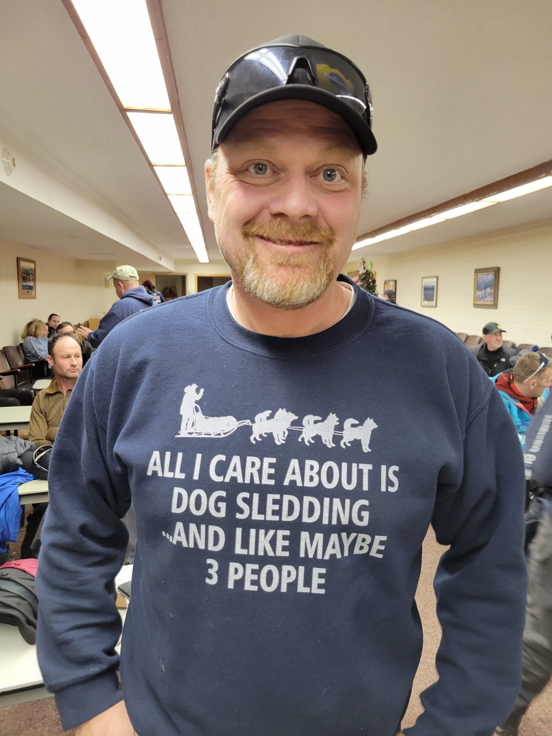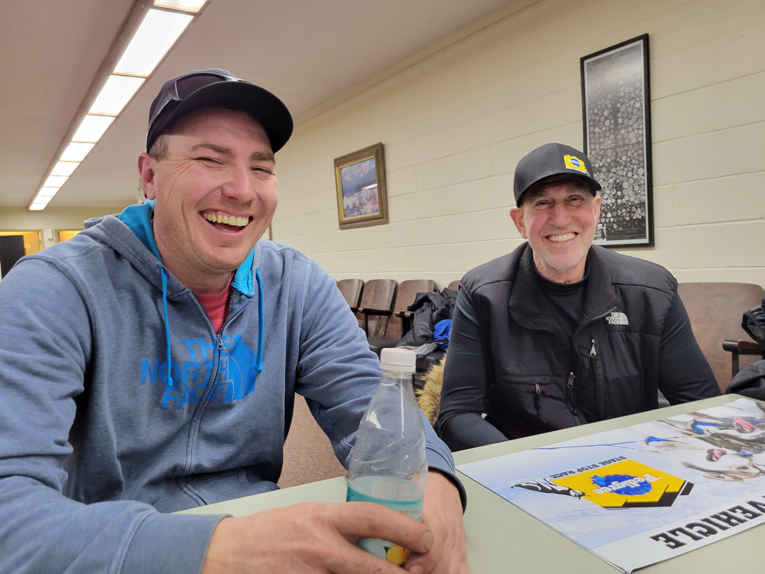 the Mushers meeting has concluded. It was short and sweet, with having a very experienced group of Mushers here. Head Vet Veronica Devall introduced her team and talked about a few things to watch with this warm weather. Matt Redwine the Trail boss gave an overview of trail marking and what to expected during the next stages. The trail compacting factor is 22. Abby and Jeremiah will once again drive along with the concession trailer and a whole bunch of goodies. Of course Race Marshal Warren Palfrey, Race Director Dan Carter and Assistant Race Director Dianna Lehn also had a few remarks. Here are a few shots from this afternoon. Next up the Ceremonial Start at 6.30 p.m. Double barrel start. Remy Coste and Cathy Rivest each carrying a dignitary from the Mars Corporation will leave the chute first.