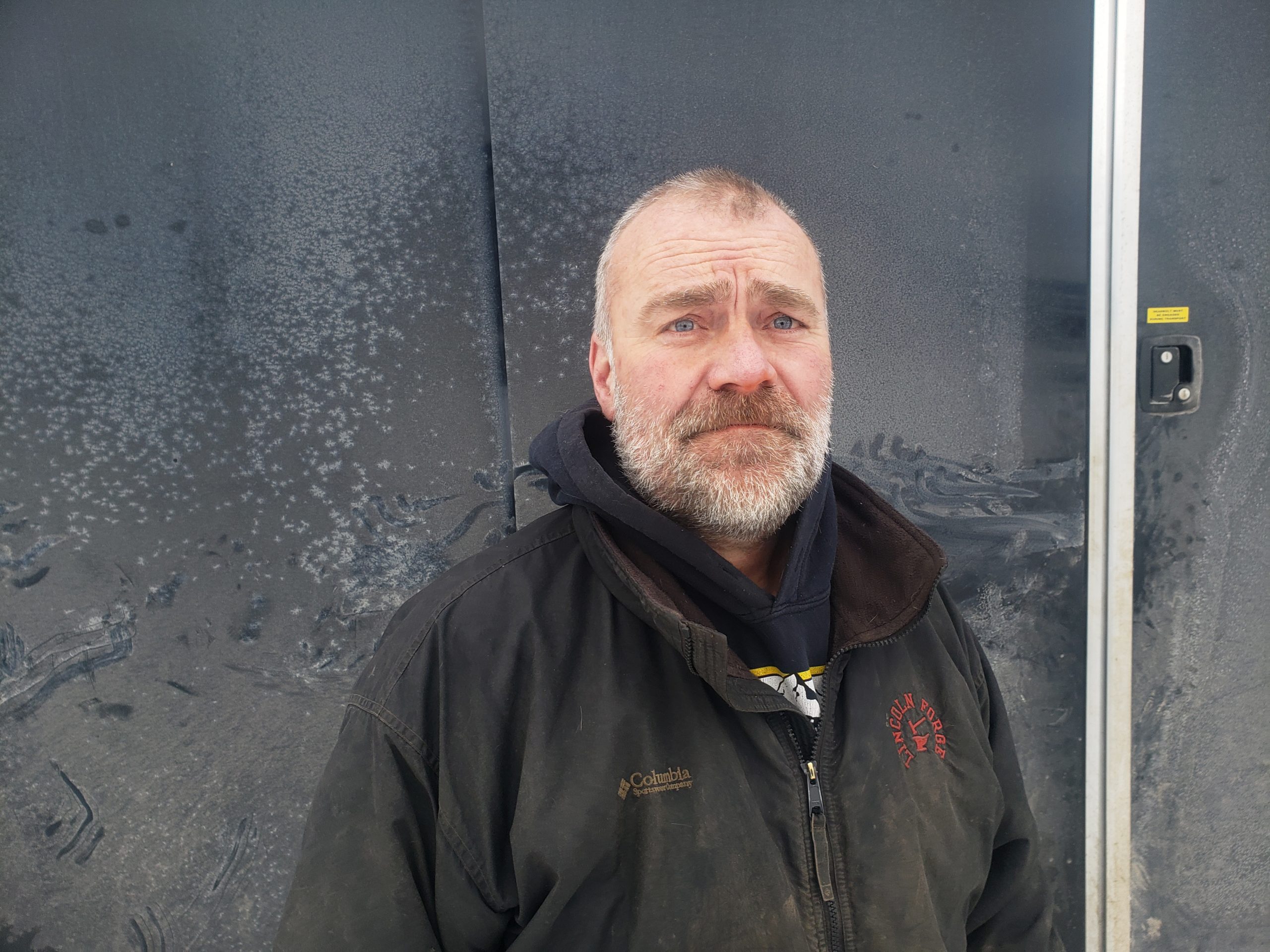 - Linda putting a belly coat on