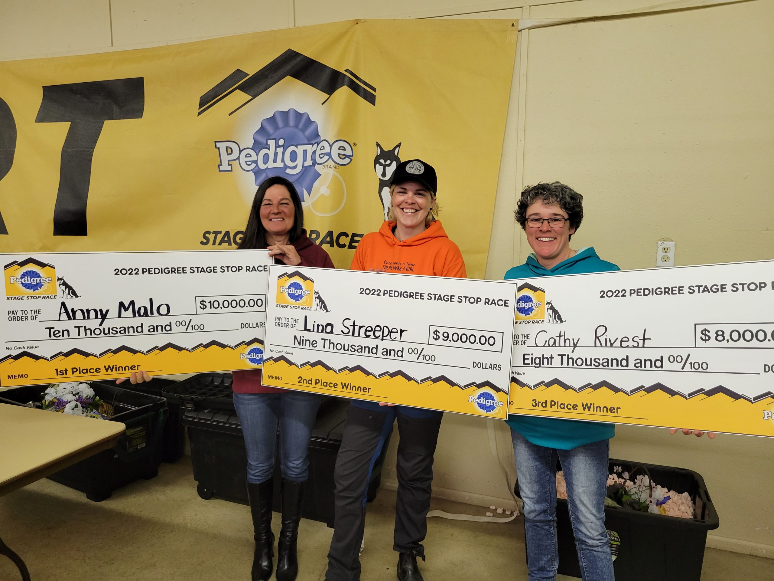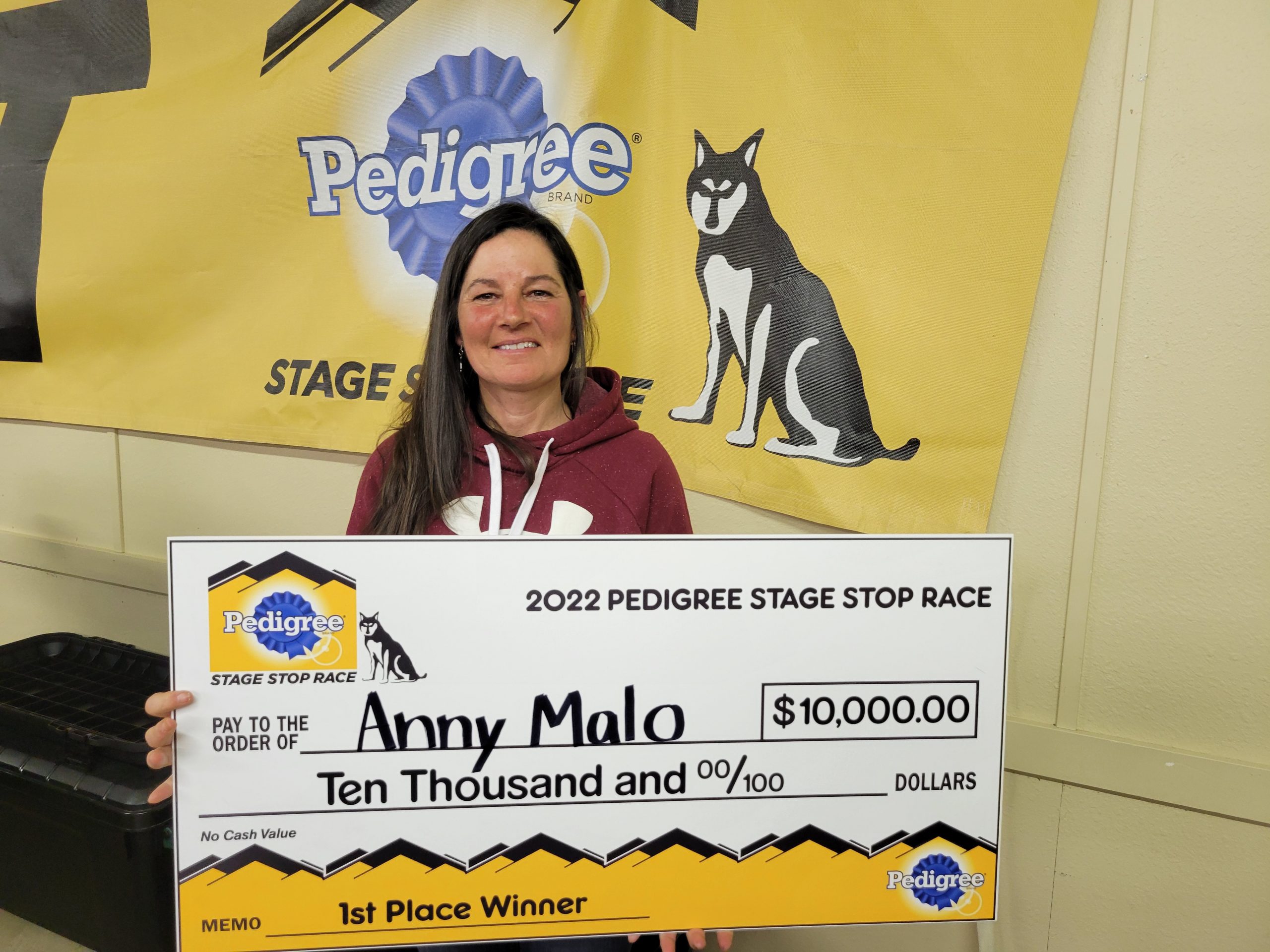Anny Malo from St-Zenon, Quebec took first place for the fourth consecutive year with a cumulative overall time of 15 hours, 11 minutes and 17 seconds. What an amazing feat! And by the same kennel that finished 3rd with a team driven by Stage Stop Rookie Cathy Rivest, a superb showing. They should be proud.