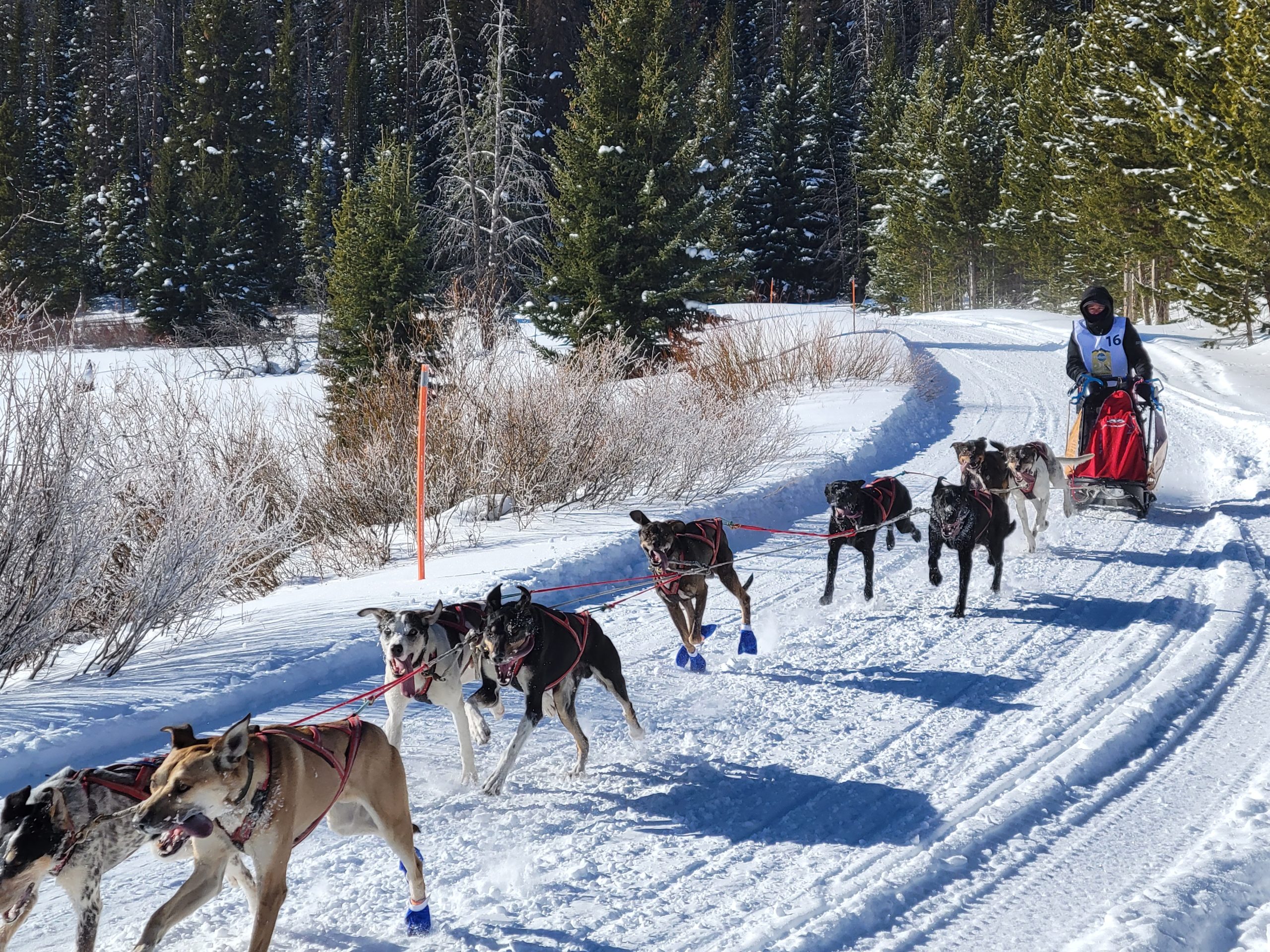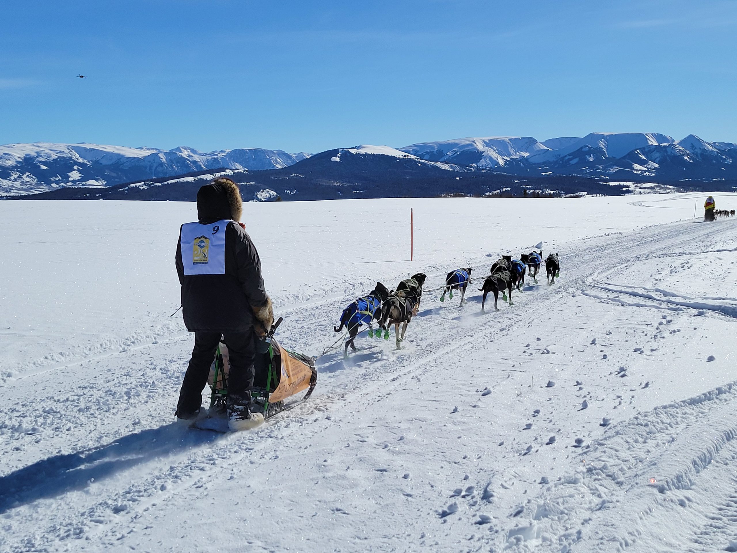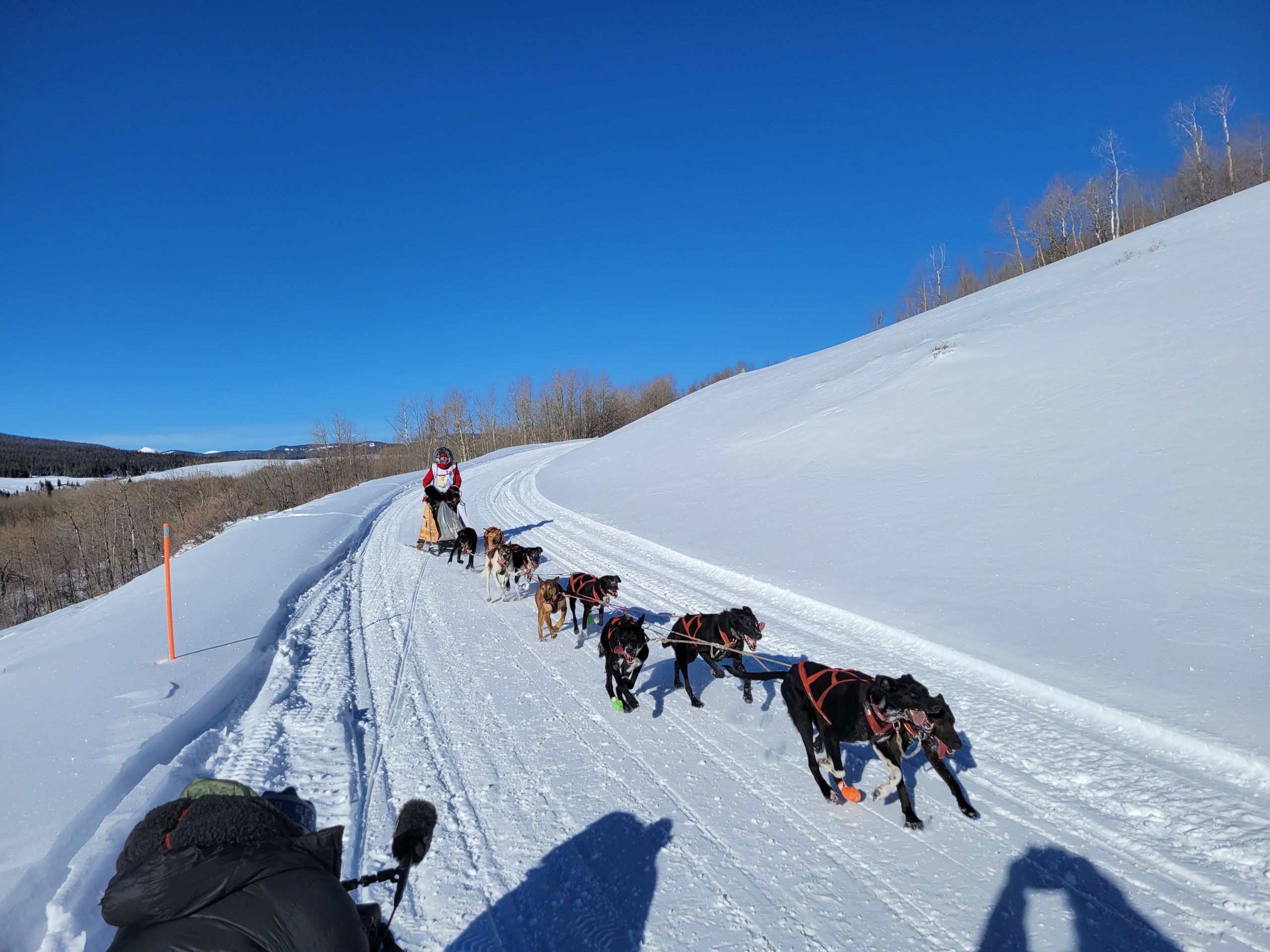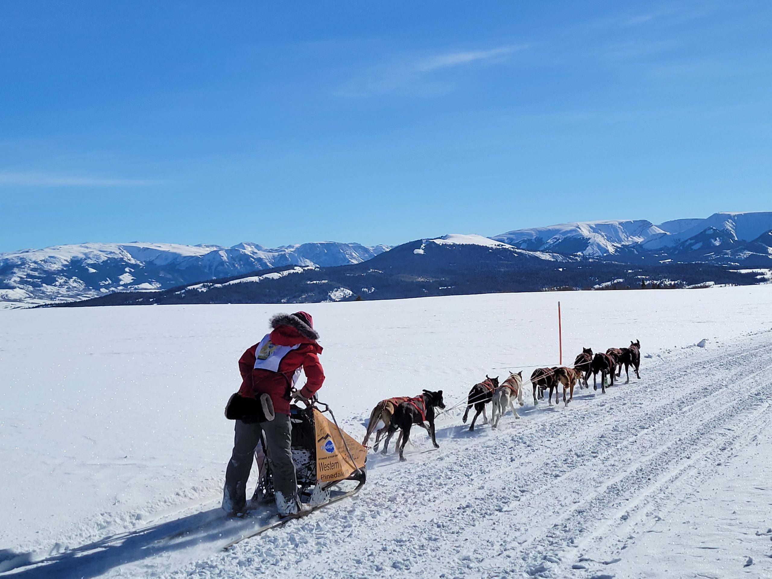 today in Pinedale saw racing at its best. Clear Skys, perfect temperatures at race start. And even once it did start warming up, there was a nice south breeze to cool down the dogs. The trail had already been groomed for Mondays originally planned stage. So with it getting re-groommed it was nice, hard and fast.