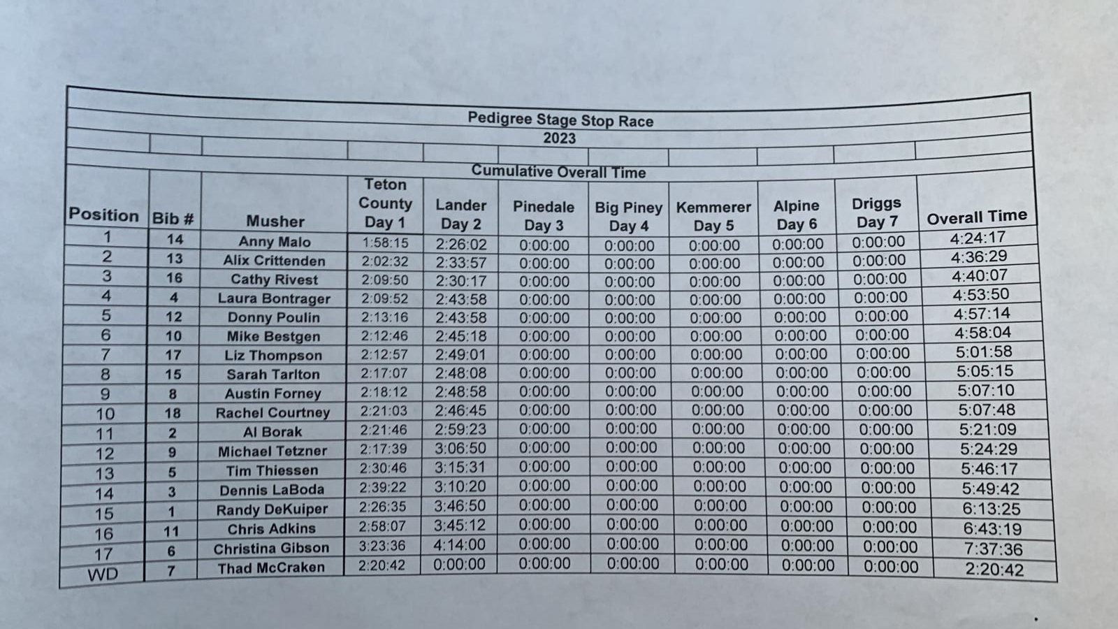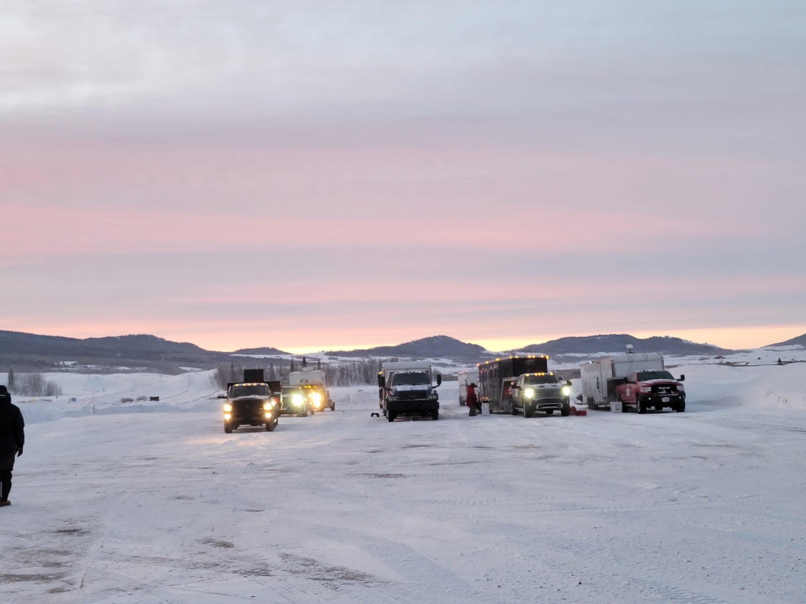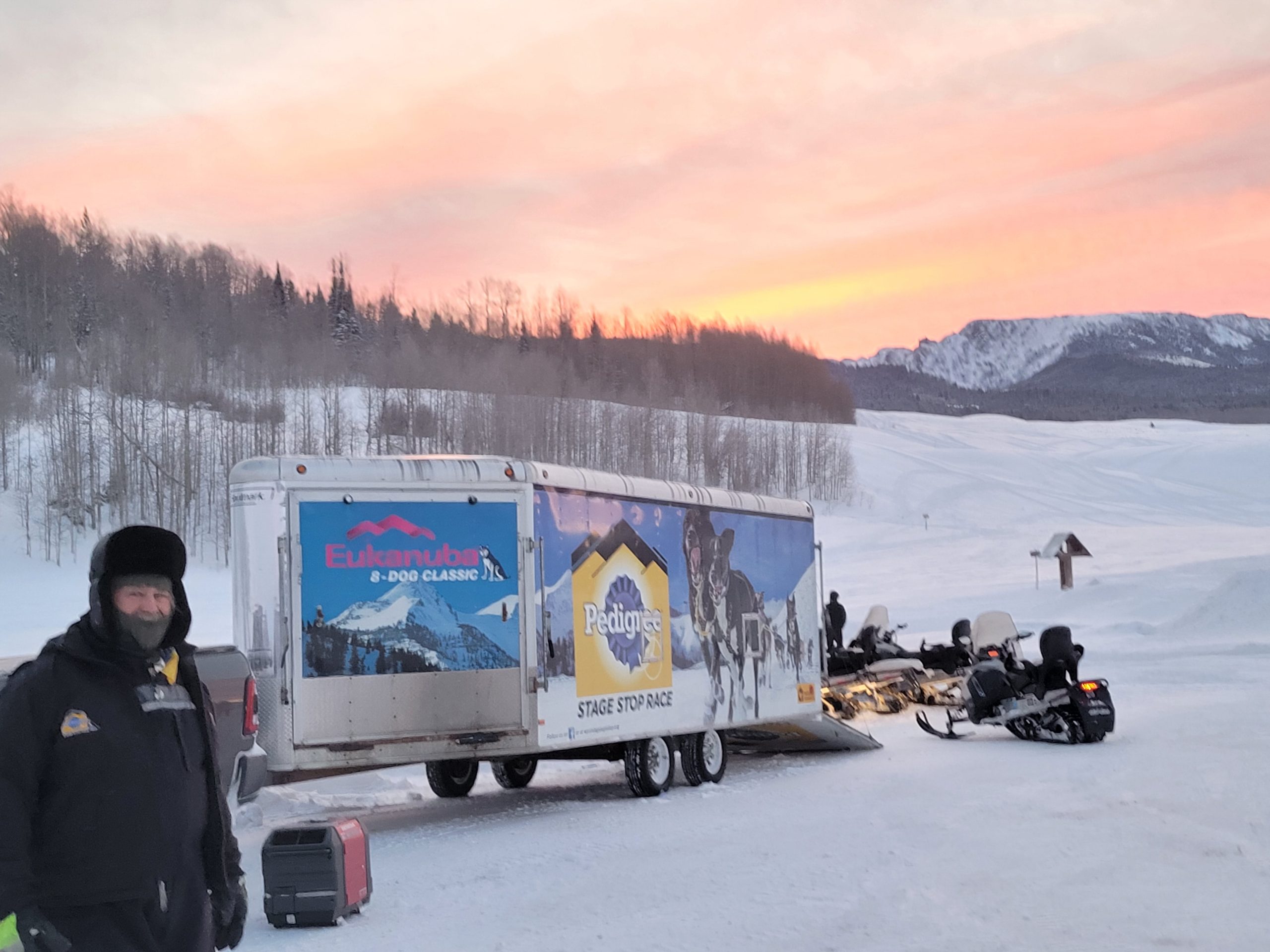 It’s a sunny, yet cold and windy morning here in Pinedale. With it supposed to warm up later and the wind also supposedly calming down a bit, Race Marshal Warren Palfrey made the decision to move the starting time to 10 a.m.