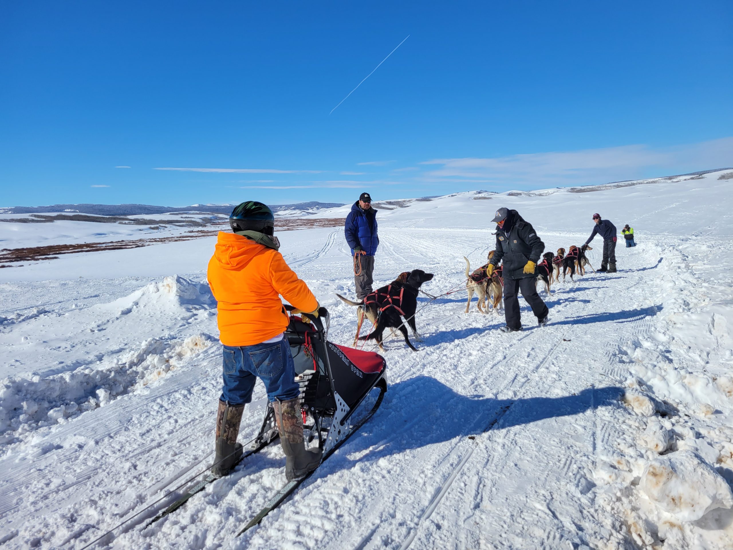 yesterdays Kemmerer Stage saw the longest Stage with 36.5 Miles. Once teams reached the turn around they had also reached the half way point of the whole race. Different strategies were deployed yesterday. Anny Malo and Cathy Rivest ran booties on all of their dogs.