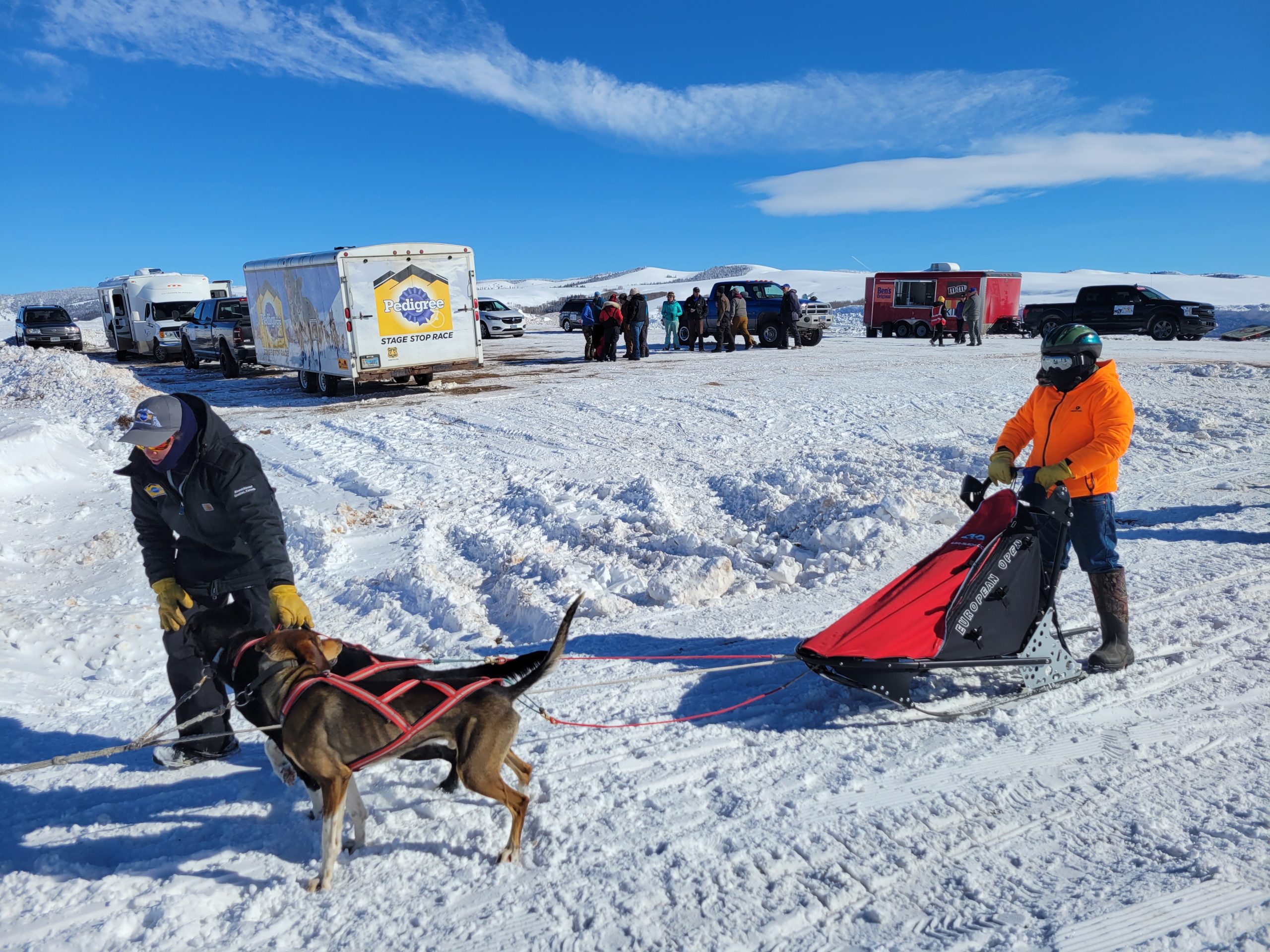 Today sees us heading back up to the Upper Green River Trailhead for a second time. Monday saw temperatures of 30 below here in Pinedale coupled with some pretty strong windchills. This morning we sit at 0F. Much friendlier. Matter of fact it is supposed to warm up into the 20th F above in the afternoon. Very different conditions than 3 days ago. In other words….. typical Wyoming weather. 3 more days of intense racing!