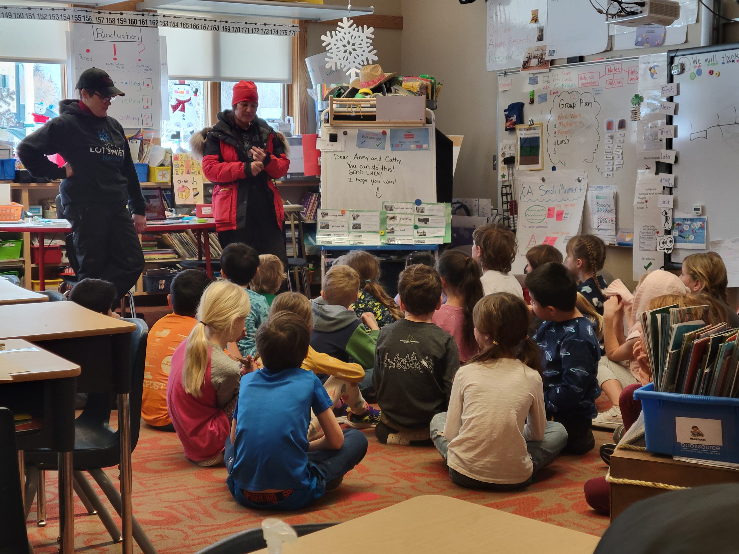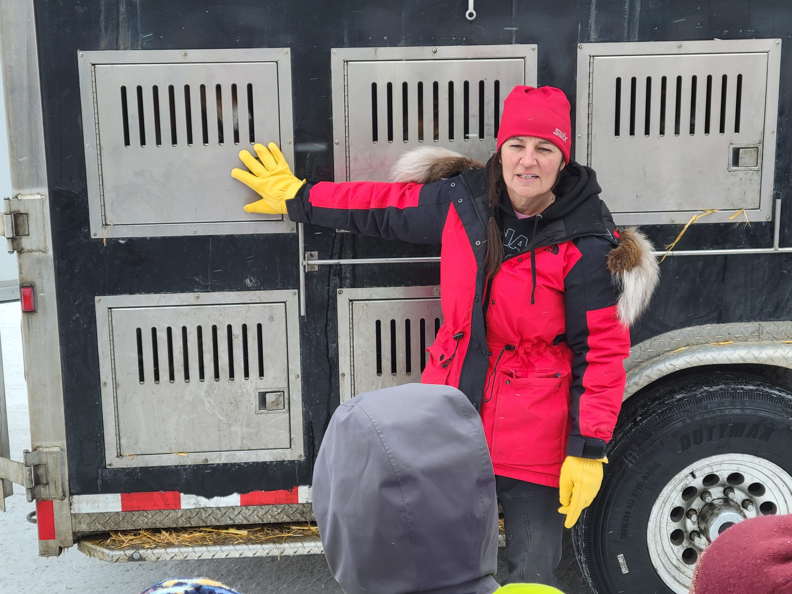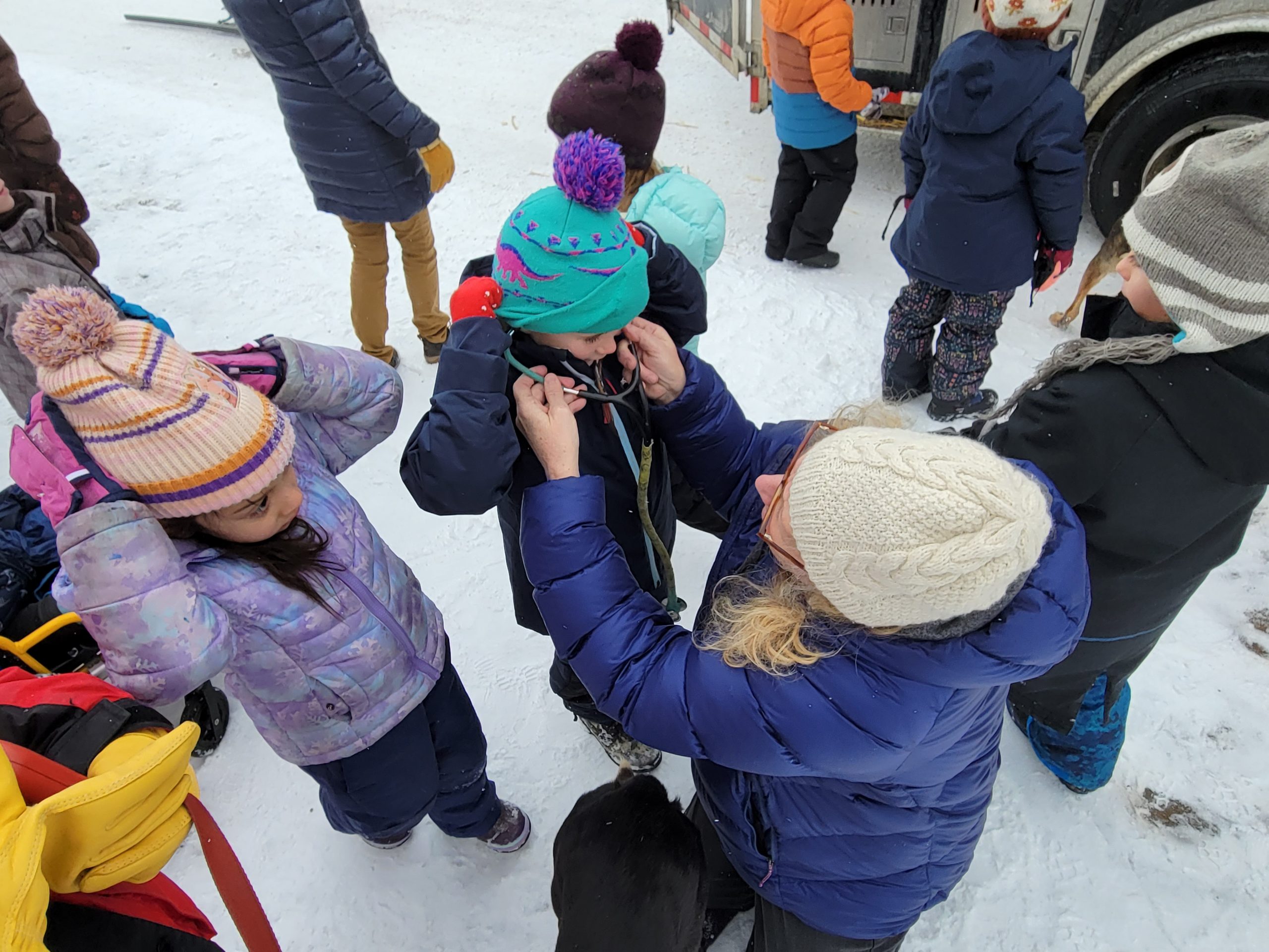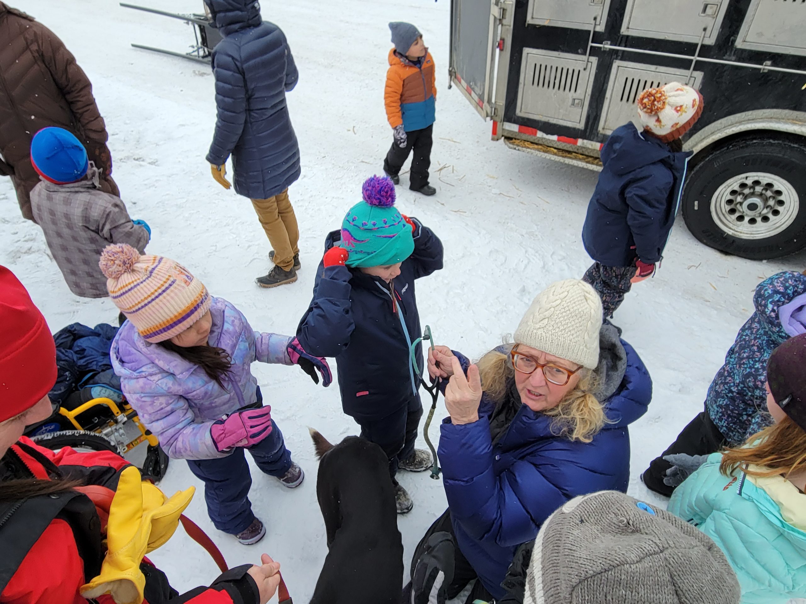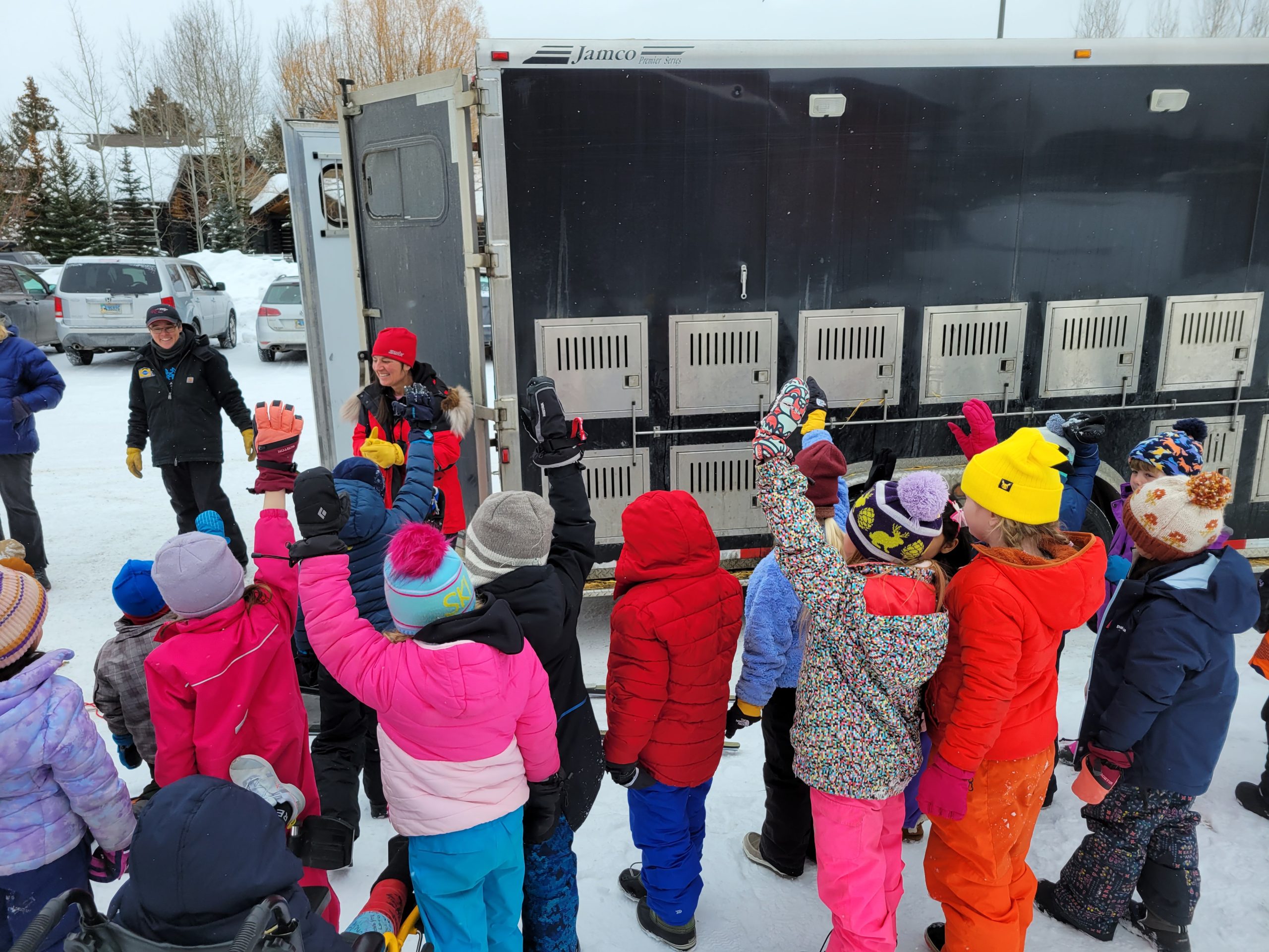 Yesterday saw many Mushers give school presentations throughout the States of Wyoming and Idaho. Those visits give great joy to the different classes. From listening to dogs hearts through a stethoscope, to pulling a sled, petting dogs and lots and lots of questions. Here a selection of pictures. Next up is the Vet Check beginning at the Delony Parking lot in downtown Jackson at 9 a.m. That sees typically quite a few visitors too.