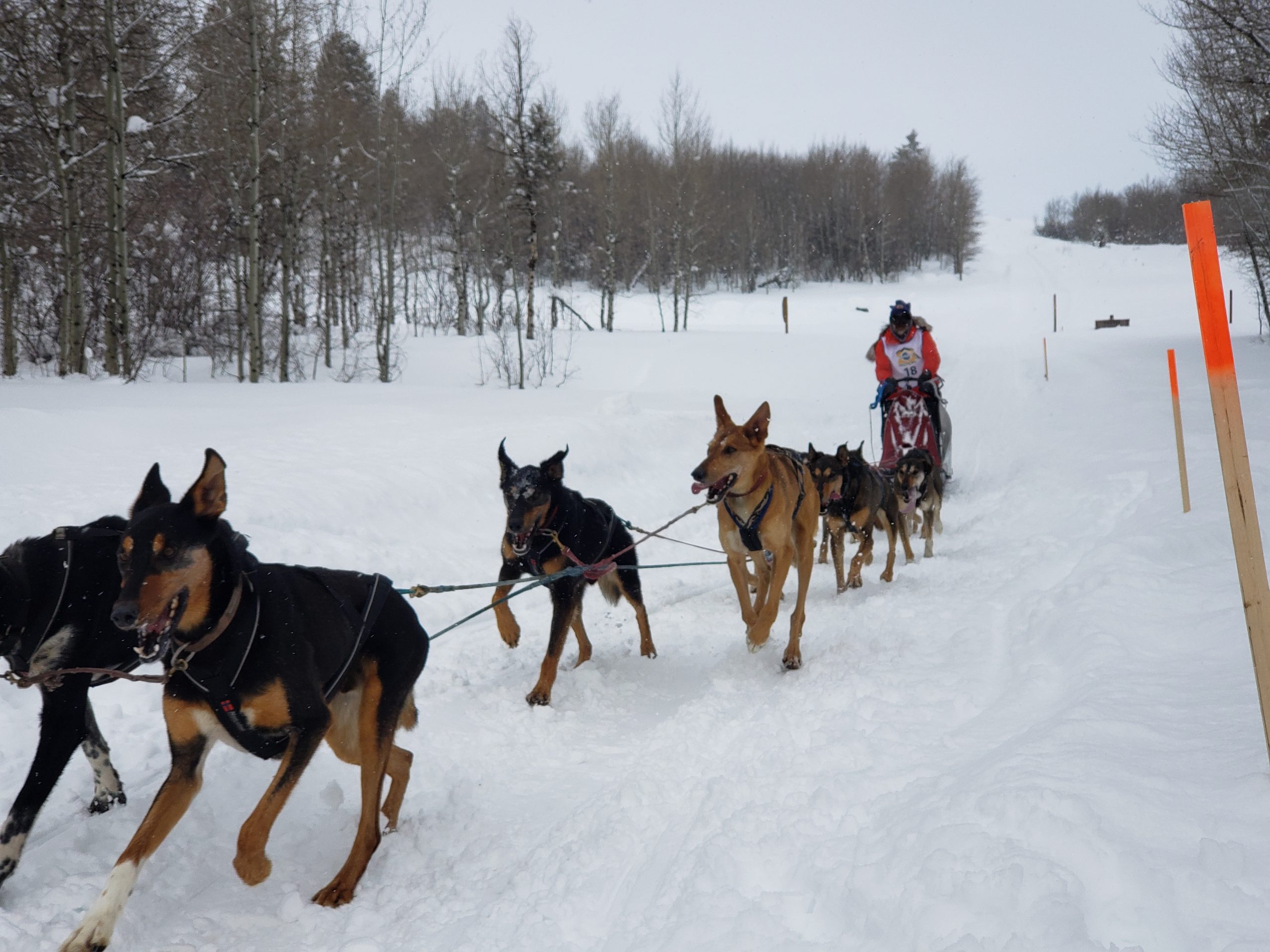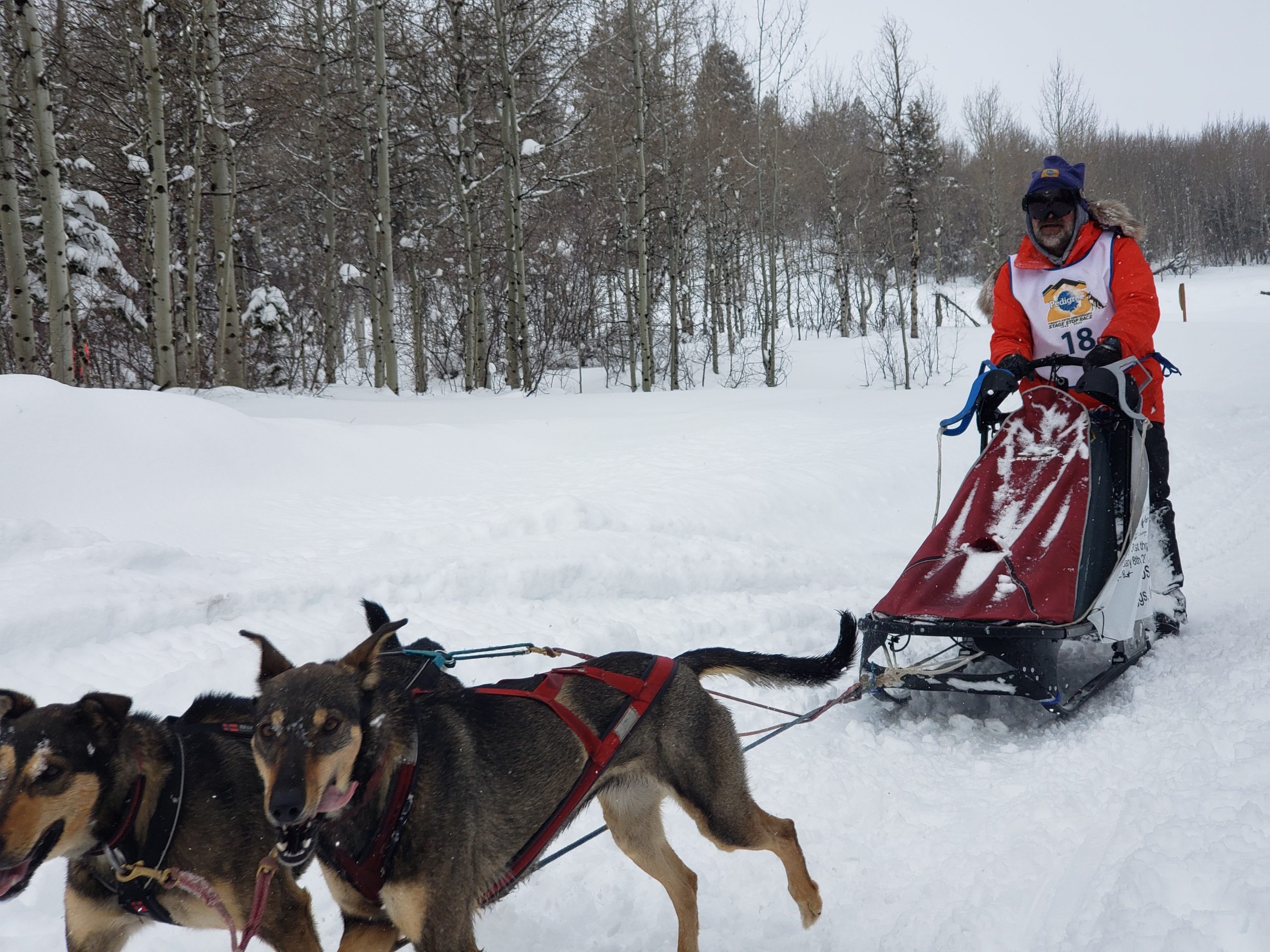 Hello Pedigree® Stage Stop Race Fans. Stage 6 in Driggs in Idaho is in the books. And what a stark contrast to the sunny and calm Stage 5 in Lander Wyoming, 2 days prior. It started snowing yesterday and basically has only let off for a few hours here and there. That meant definitely not a fast trail on this stage, which is pretty hilly to begin with.