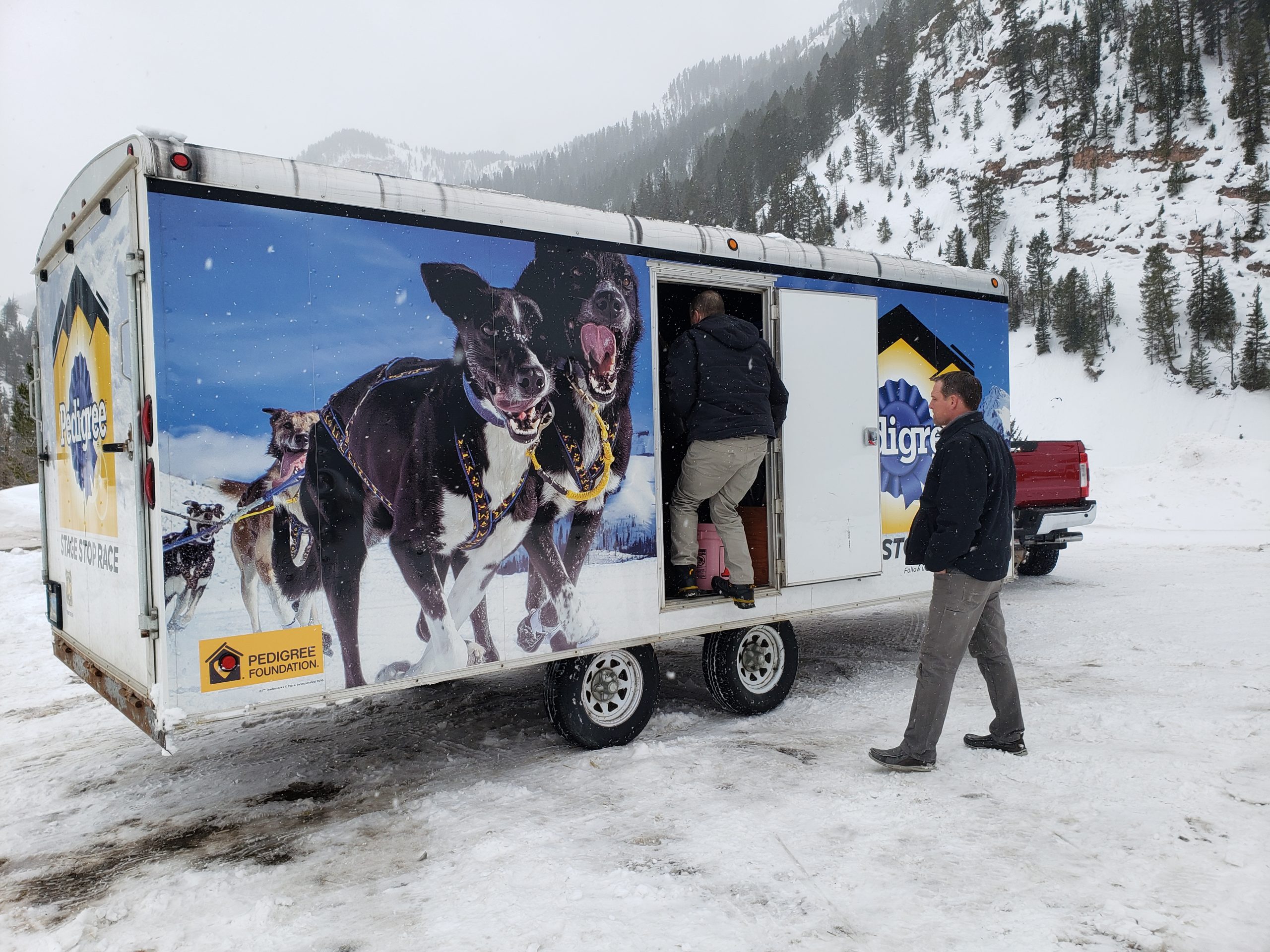 Hello Pedigree® Stage Stop Race Fans. One of the major fun part of Dog Racing is that people from all walks of life, and all corners of the world are coming together be it race staff or be it the mushers. It is traveling time for everybody. As for part of the race staff, after a night in Salt Lake City we arrived in Jackson. There is very light snow falling and temperatures are right about freezing. For setting up at dog race, that is very helpful ( not 30 below ).