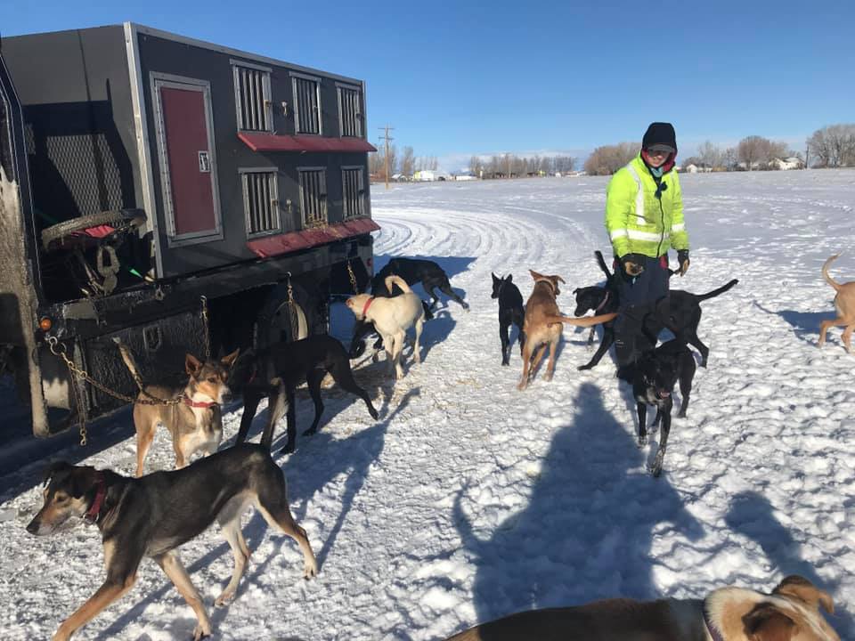 Rachel Courtney Garand Made it to Pinedale Wyoming and will spend a couple nights there to train, before going to Jackson: ” The dogs travelled really well and all look happy and excited to be on the road “.