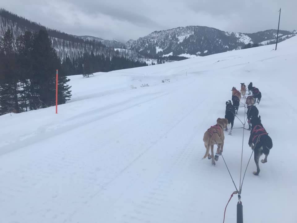 This is from Lina Streeper: ” West Yellowstone Montana will be our training headquarters for the next seven days. Located at the west entrance to the famous Yellowstone National Park. The elevation is 6600 feet, and there is always an abundance of snow. I’d estimate 5-6 feet of snow currently and it’s not uncommon for many more feet to fall over the next weeks. We will run the dogs on shorter trails for the next few runs to allow the team to get used to the thinner day. Our trip south went well and we had fairy good driving conditions the coldest we seen was near Fort Nelson approximately-38 and the warmest was Lethbridge Alberta at +11c (55f)”. Let Bud do some more explaining himself: