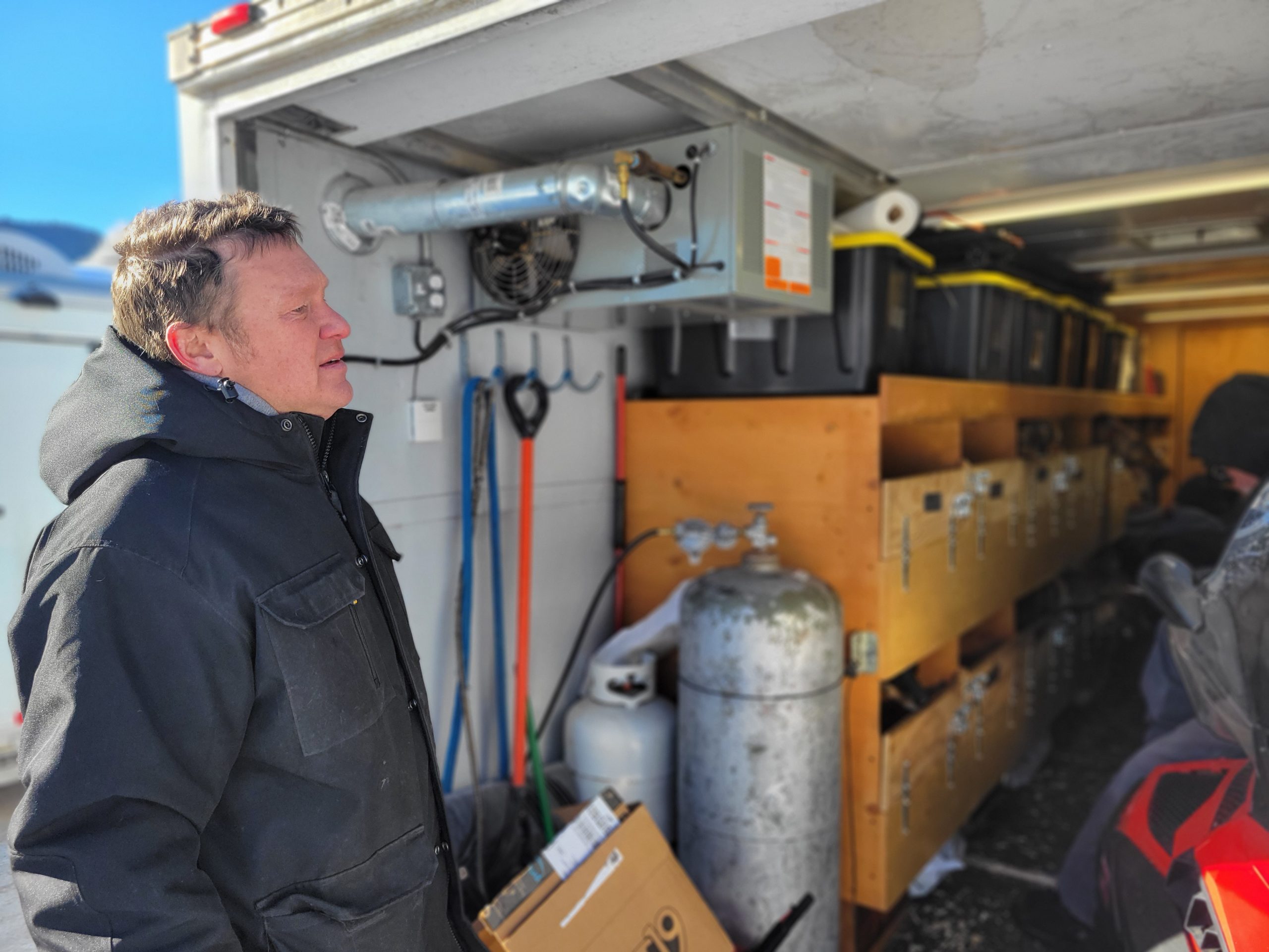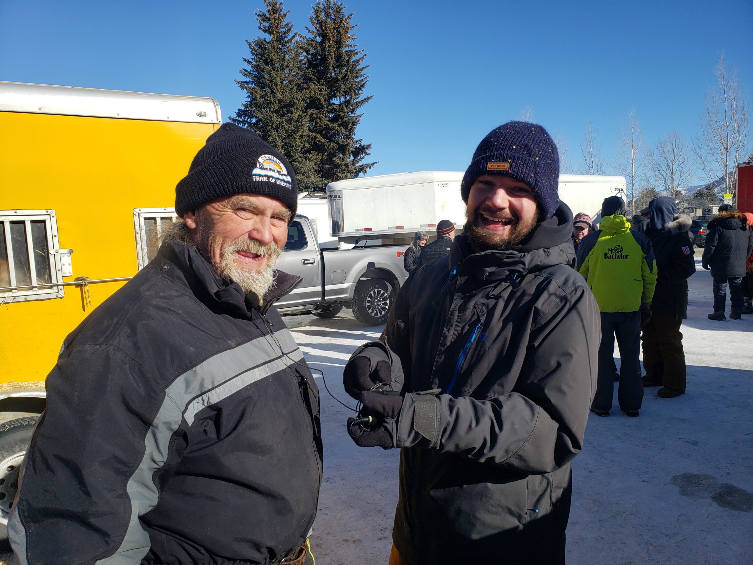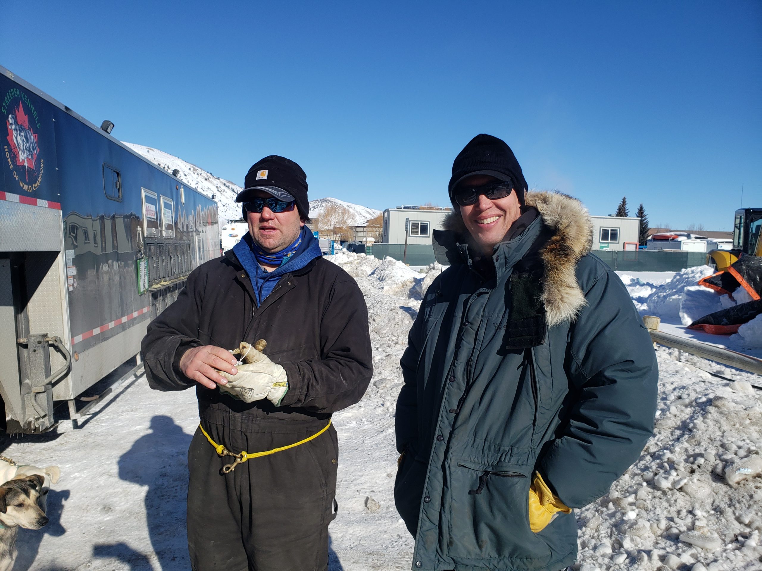 Grant Beck made the treck all the way from Yellowknife. Travel has not necessarily gone smooth, he had to trade trucks along the way. Seeing Alix’s dog truck with the hood up also wasn’t the best of signs… and non other than Buddy Streeper came out crawling from underneath the hood.